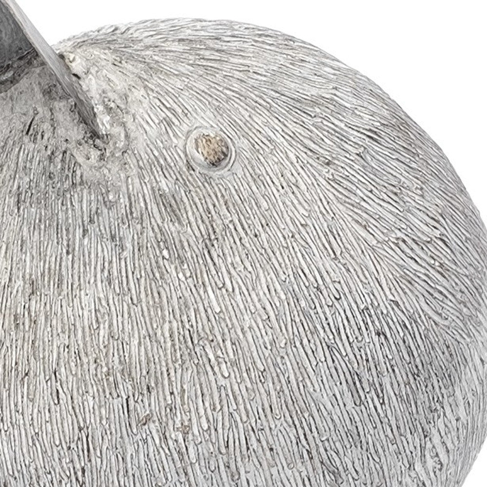 This whimsical Off-White Resin Bent Bird sculpture is the perfect way to add some fun decor to your home. This piece is made from resin and has a textured off-white finish on it. The textured finish mimics the look of bird feathers. The body of the bird has a solid round shape with eye details and a large beak. This bird is bending down which adds movement to the whole piece. Attached to the body there are two thin legs that go down in to webbed feet which have the same finish and color as the body. While this decor piece has a more whimsical feel, the neutral colors makes it suitable for formal decor as well. 8" H x 6" W x 6" D