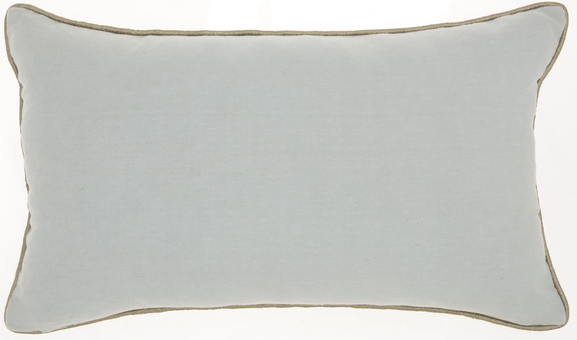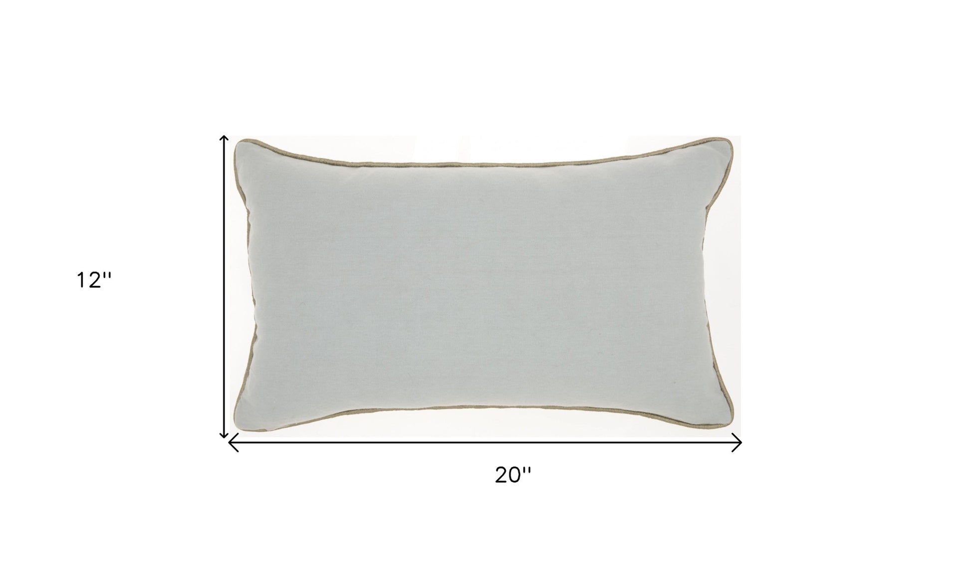 With this Periwinkle Embellished Lumbar Pillow you can elevate the look of any seating area in your home. This rectangular shaped pillow is covered in a soft velour fabric in a stunning periwinkle color. This fabric has a striped design on it with alternating embossed and plain stripes. In two random spots there are gold embellished shapes that add depth to the overall look of this pillow. These embellishments are made from gold colored sequins. Around the perimeter of the pillow there is beige colored edging. You can use this pillow to add a pop of design to your bed, your couch, or even your favorite chair. 5" H x 12" W x 20" D