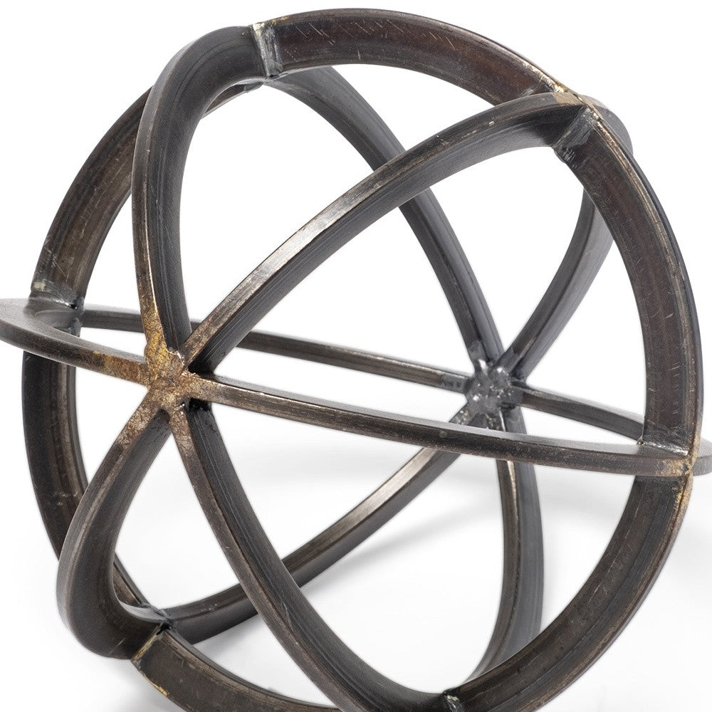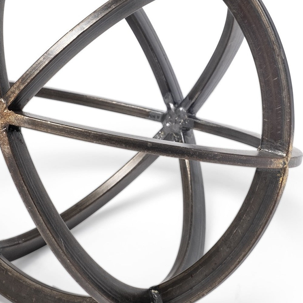 With this Petite Black Metal Circular Decorative Object you can add the perfect touch of contemporary design to your home. This decor piece is made from solid metal and has a general circular orb shape. The antique black finish shines gold in some lights which elevates the look of this petite decor piece. Inside the circular shape there is are two circles that intersect creating a geometric shape. You can use this decor piece as part of your general decor or as a stand alone piece. The understated color and design of this piece will work with any interior style or colors you already have in your home. 8" H x 7" W x 8" D