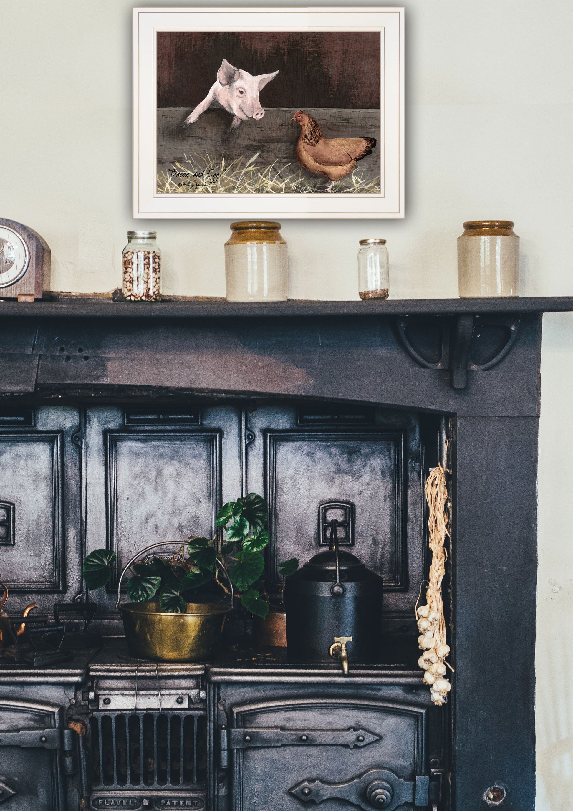 Unique and decorative, this pig and chicken on the farm white framed print wall art will leave a lasting impression. Bring a little bit of the farm indoors when you hang this pig artwork. This print is a visual artistic expression that allows you to decorate your space in style. Reproduced for you on paper, this hanging decorative accent will be a trendy and fashionable way to dress your walls. Hang on your wall to add some up to date fashion and decoration. Utilize this opportunity to create a focal point in the room with this fabulous wall decor option. 15 inches H x 19 inches W x 1 inches D
