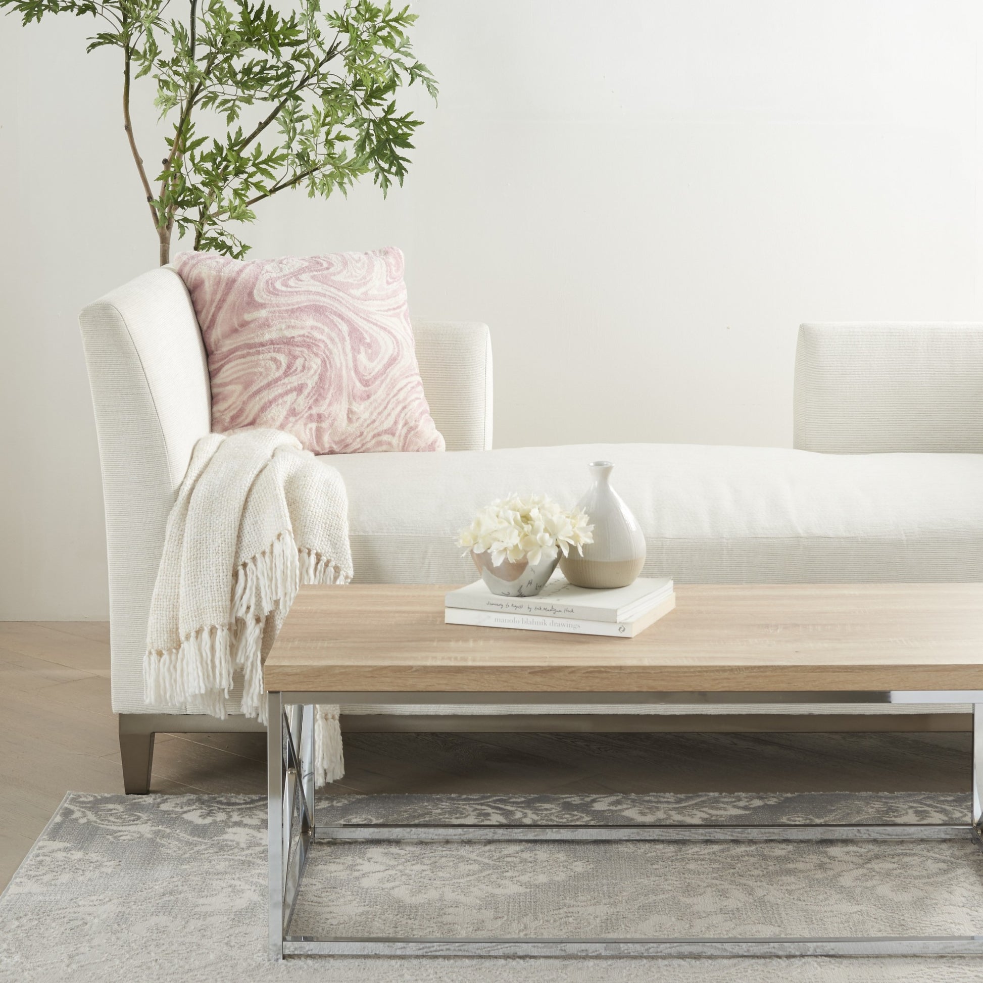 Add a touch of contemporary design mixed with unbeatable comfort to your home with this Pink Marble Patterned Throw Pillow. This pillow has a square shape and a hidden zip closure at the back for a seamless look. The fabric that covers this pillow has a stunning marble pattern on it with a light pink as the main color. There are different shades of pink and white that act as veining and add depth and dimension to the overall look. You can use this minimal pillow anywhere in your home no matter what colors or decor styles you already have. Elevate the look of your bed, your couch, or your favorite chair with this throw pillow. 5" H x 20" W x 20" D
