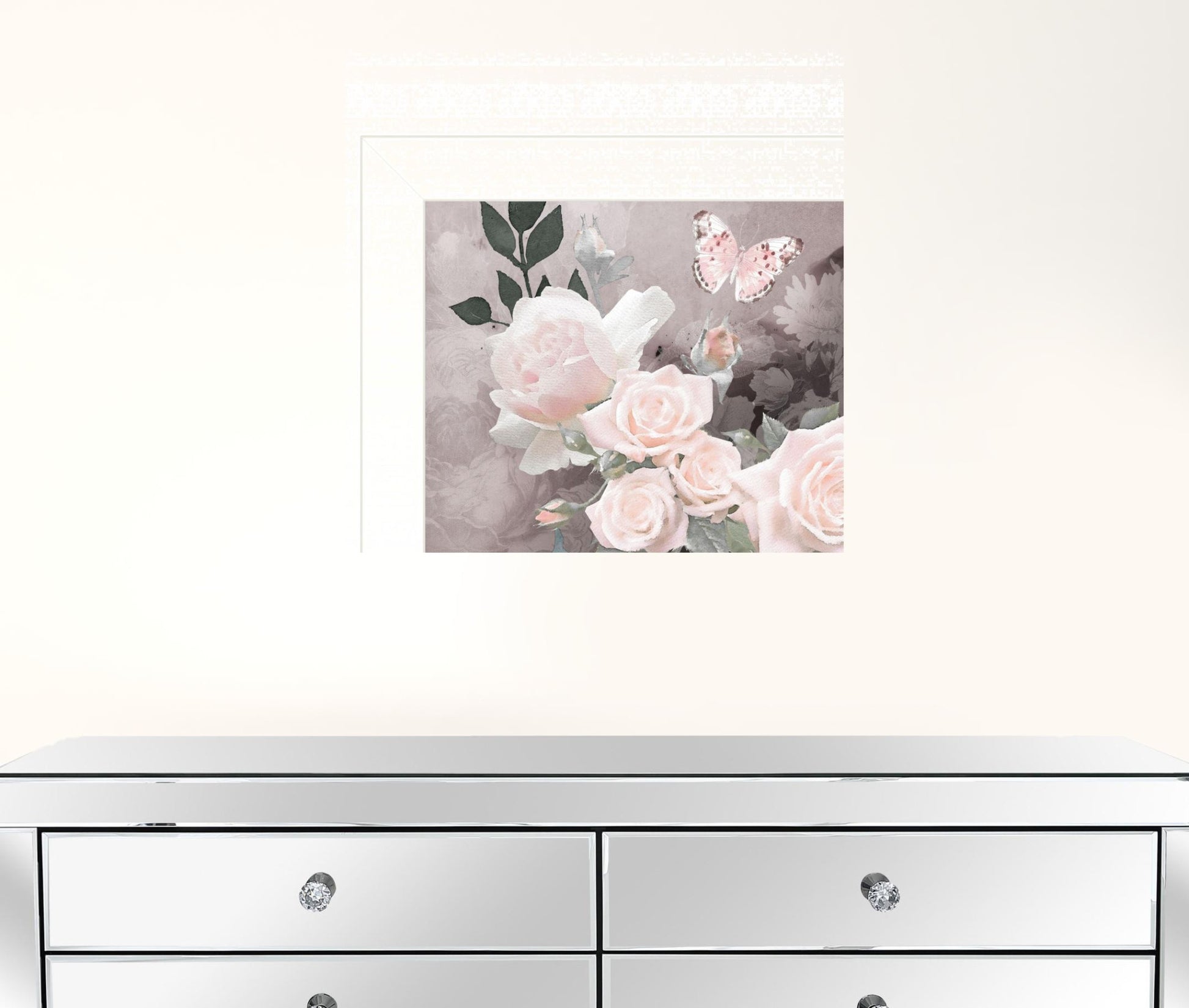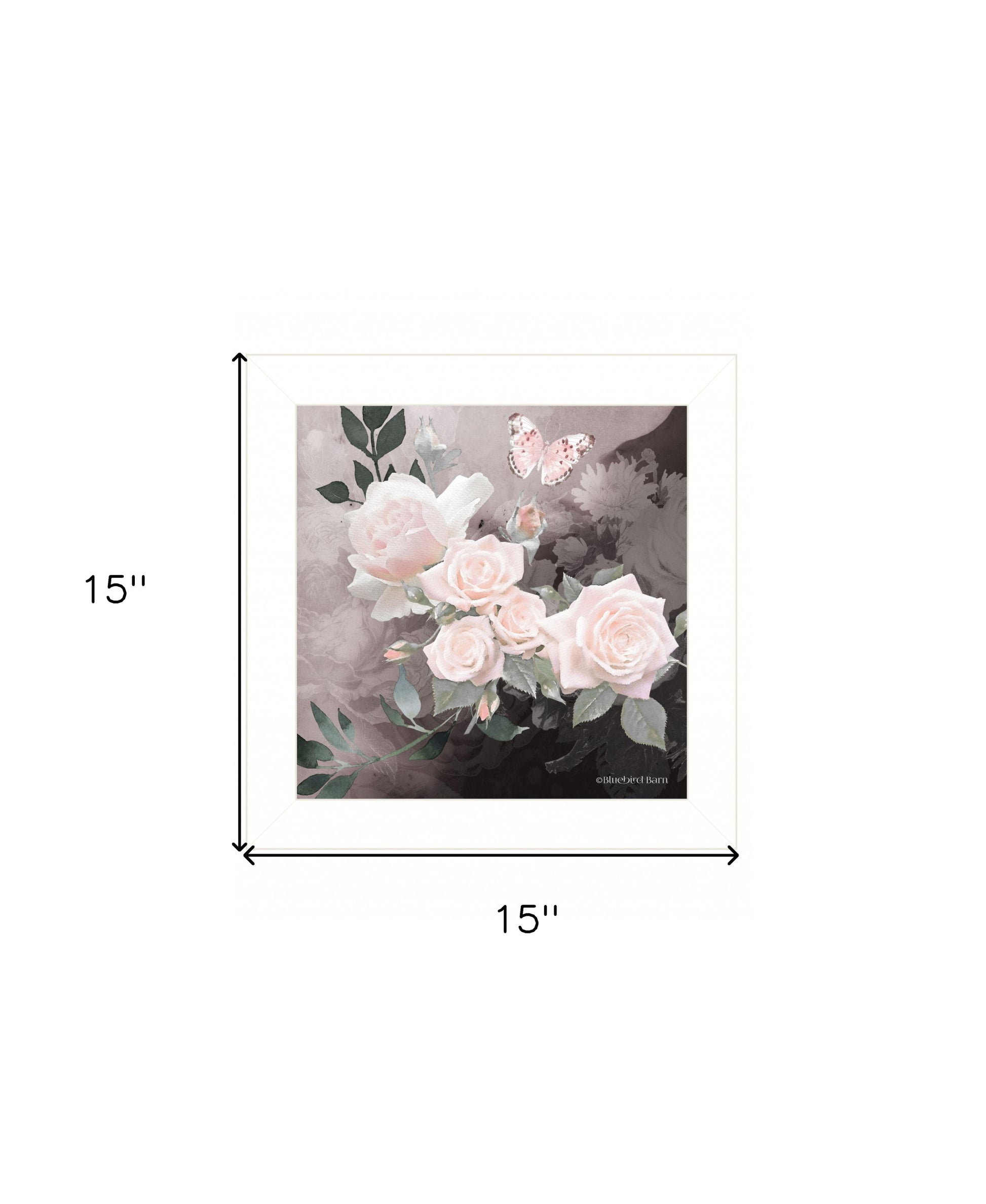 This pink roses and butterfly white framed print wall art will add a beautiful decorative accent to your decor. This print is a visual artistic expression that allows you to decorate your space in style. Reproduced for you on wood, this hanging decorative accent will be a trendy and fashionable way to dress your walls in a rustic and modern farmhouse vibe. Adding this hanging wall art to your space to make your room feel more finished and attractive. Instantly liven up your space with this art that brings color and dimension to your walls. 15 inches H x 15 inches W x 1 inches D