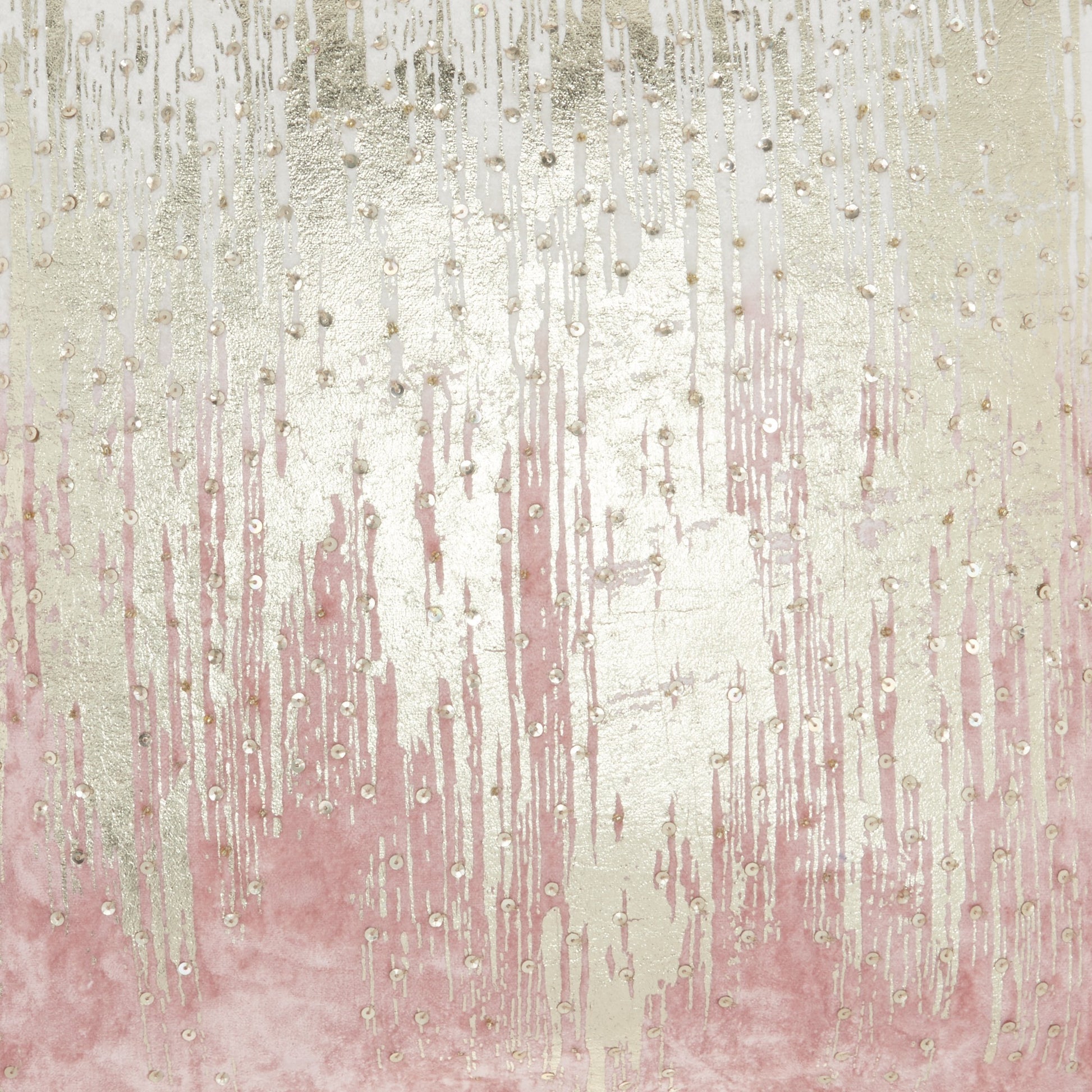 This Pink Sequined Ombre Throw Pillow will help you elevate the look of any seating space in your home with its unique design and stunning color palette. This square shaped pillow is covered in a soft pink colored fabric which serves as the perfect background for the details on top. The ombre effect comes from the white and gold foil colors that have a drip pattern to them and contrast very nicely with the pink background. On top of all of this there are gold colored sequins scattered around the whole front of this throw pillow. There is also thin cream colored edging around the whole perimeter. This throw pillow will look great on your bed or your couch as every day decor or you can use it to dress up a chair for formal occasions as well. 5" H x 18" W x 18" D