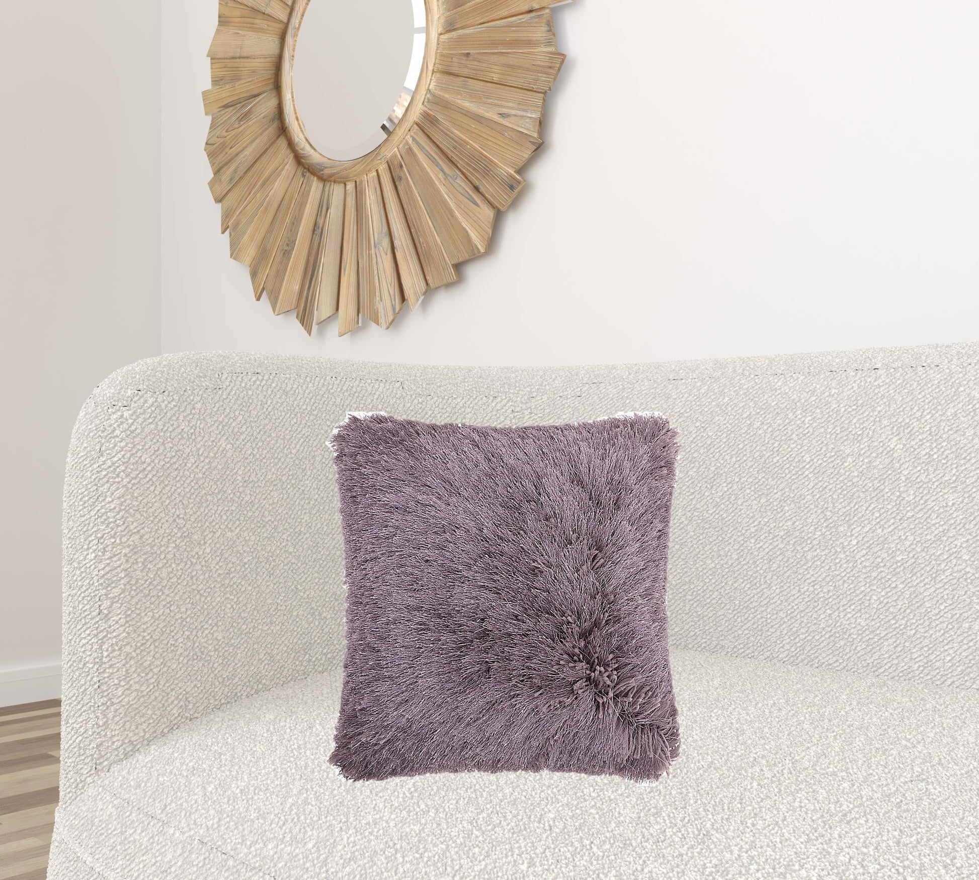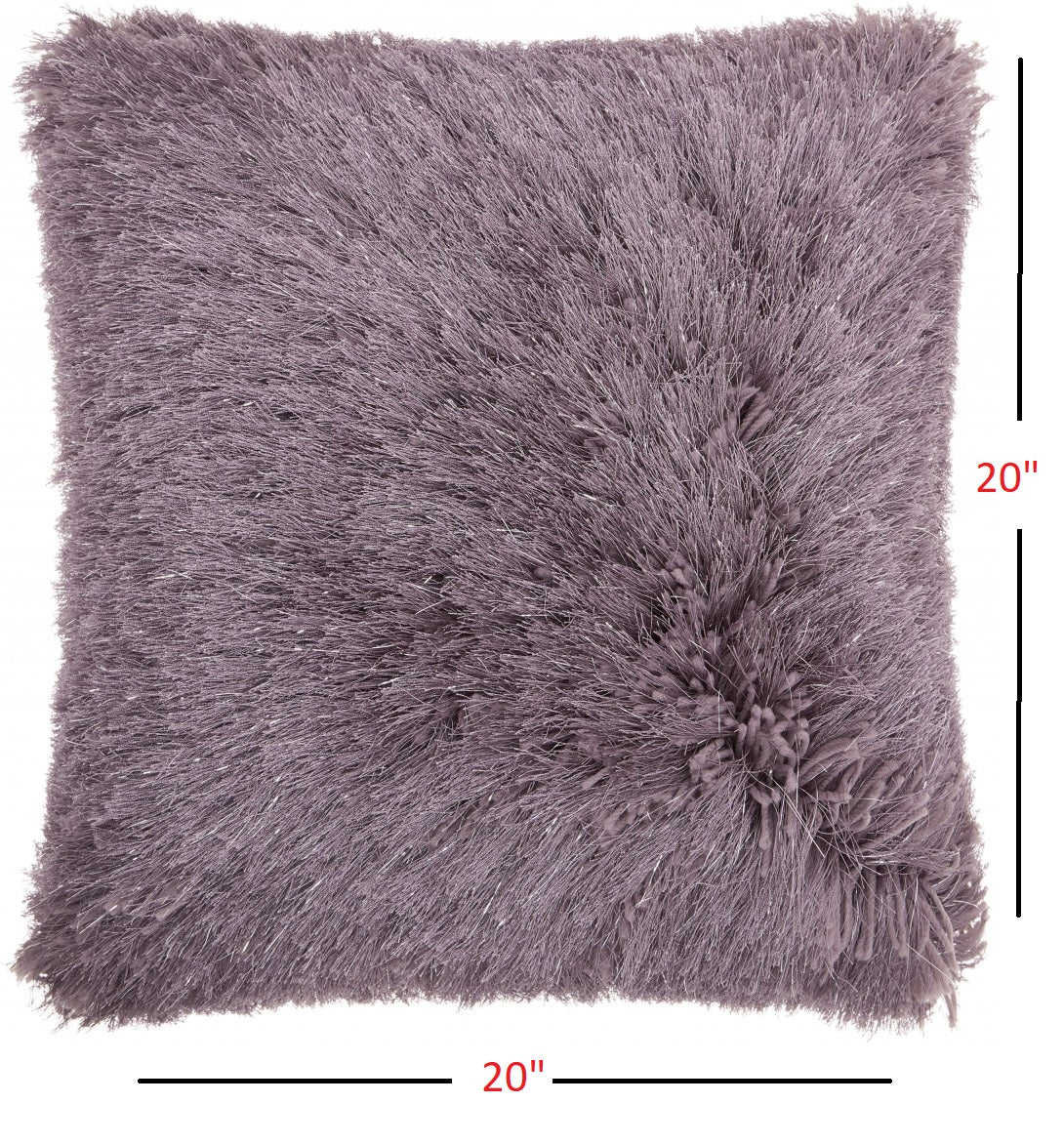 Enjoy all that comfort has to offer with this Plush Lavendar Shag Accent Throw Pillow. The 100% Polyester fiber in non-woven casing makes for a great comfort piece. The shag fabrication gives a soft and calming exterior, adding texture to your home. The modern charcoal color is the perfect hue to easily style and mix and match with your other decor pieces and pillows. 6" x 20" x 20"