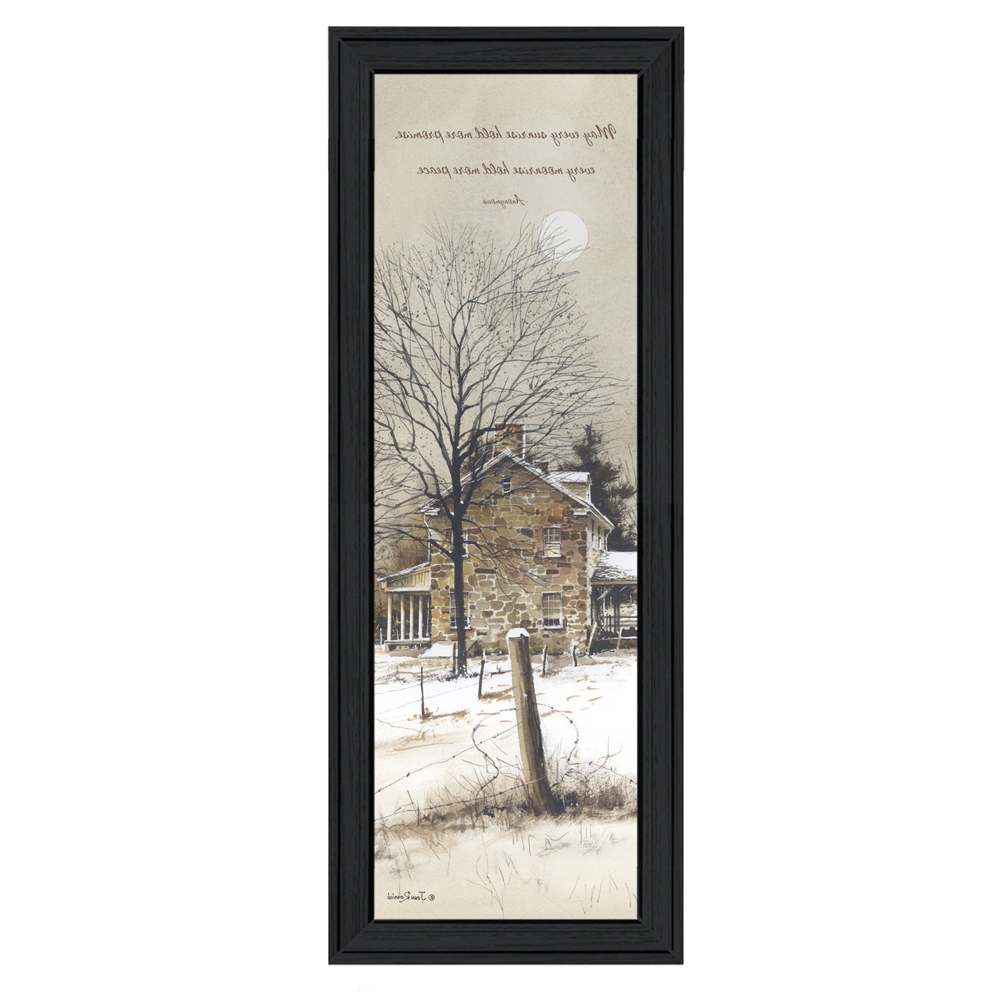 Add an air of fashion to your room and rejuvenate the space with this promise and peace black framed print wall art. This print is a visual artistic expression that allows you to decorate your space in style. Reproduced for you on paper, this hanging decorative accent will be a trendy and fashionable way to dress your walls. Hang on your wall to add some up to date fashion and decoration. Instantly liven up your space with this art that brings color and dimension to your walls. 8 inches H x 20 inches W x 1 inches D