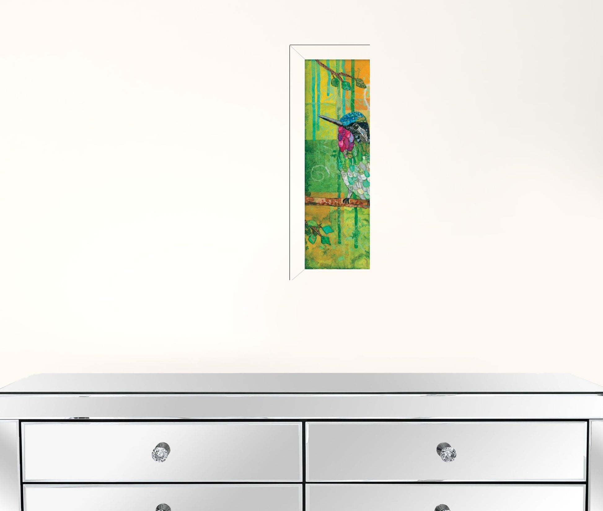 The purple throated mountain gem white framed print wall art is the perfect decorative accessory for your home. This bird inspired art will be a great addition to your space. This print is a visual artistic expression that allows you to decorate your space in style. Reproduced for you on paper, this hanging decorative accent will be a trendy and fashionable way to dress your walls. Adding this hanging wall art to your space to make your room feel more finished and attractive. Instantly liven up your space with this art that brings color and dimension to your walls. 14 inches H x 14 inches W x 1 inches D