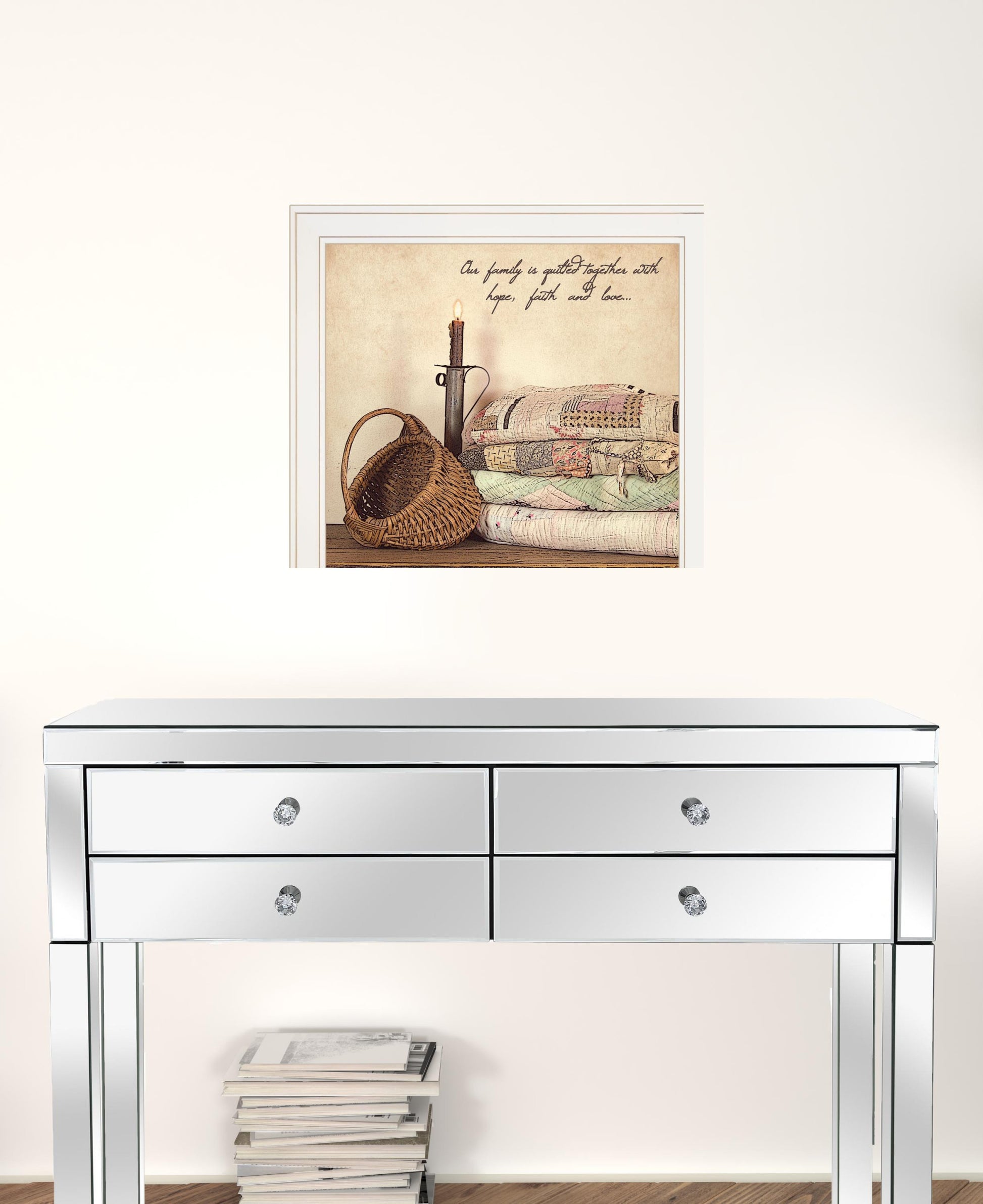 The quilted family inspirational white framed print wall art is the perfect decorative accessory for your home. This print is a visual artistic expression that allows you to decorate your space in style. Reproduced for you on paper, this hanging decorative accent will be a trendy and fashionable way to dress your walls. Adding this hanging wall art to your space to make your room feel more finished and attractive. Utilize this opportunity to create a focal point in the room with this fabulous wall decor option. 21 inches H x 21 inches W x 1 inches D