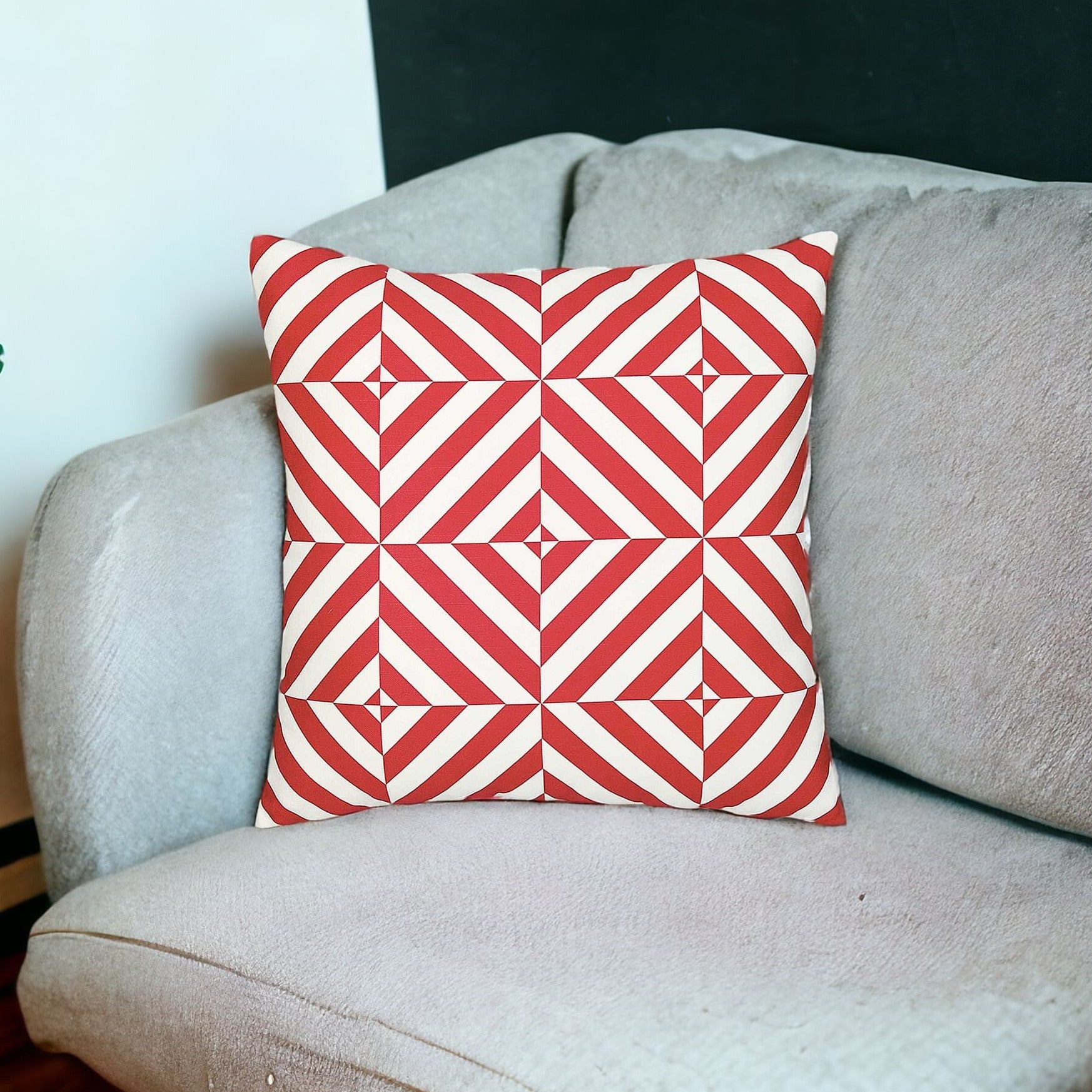 Red And White Geometric Squares Decorative Throw Pillow Cover