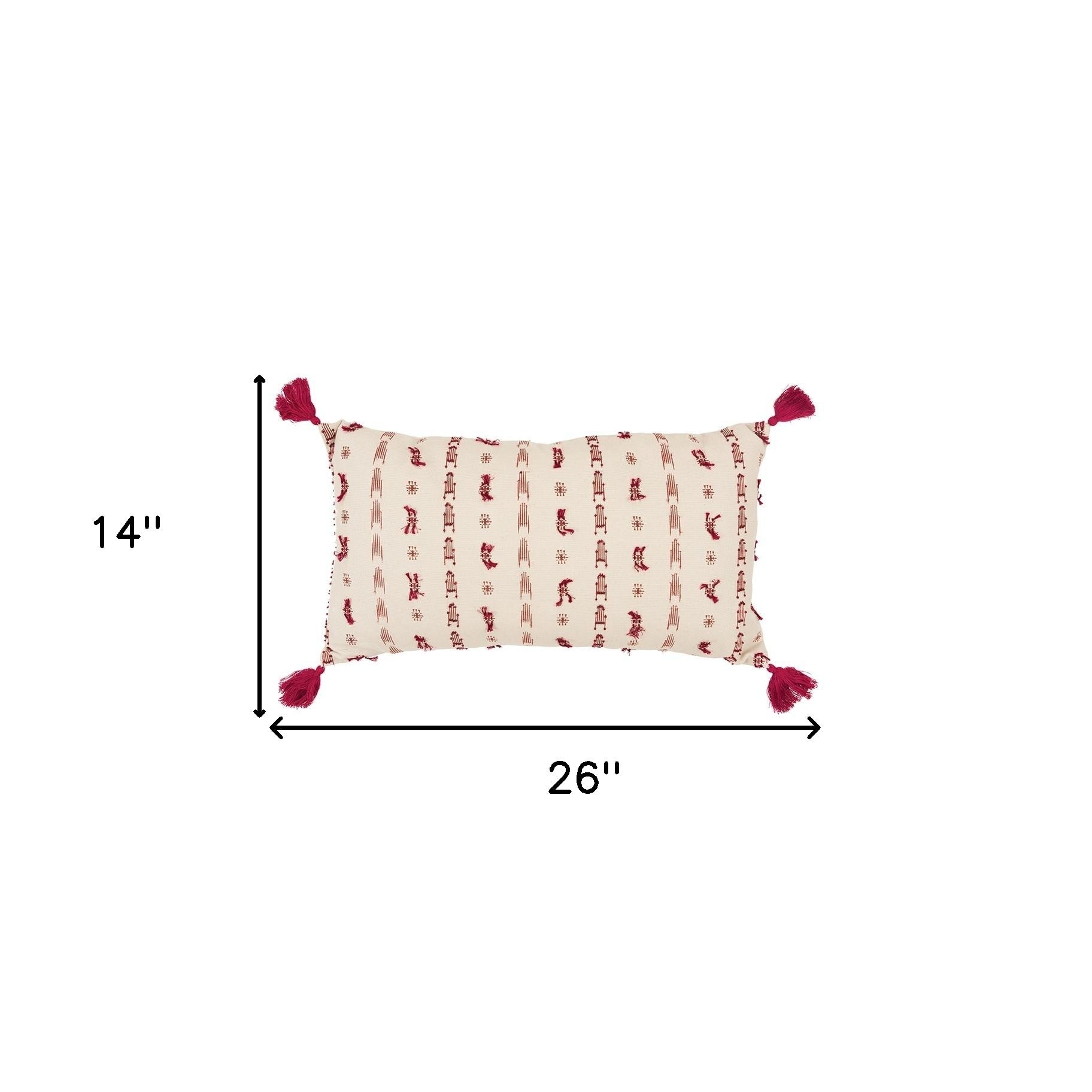 Red Beige Tribal Inspired Tasseled Lumbar Pillow