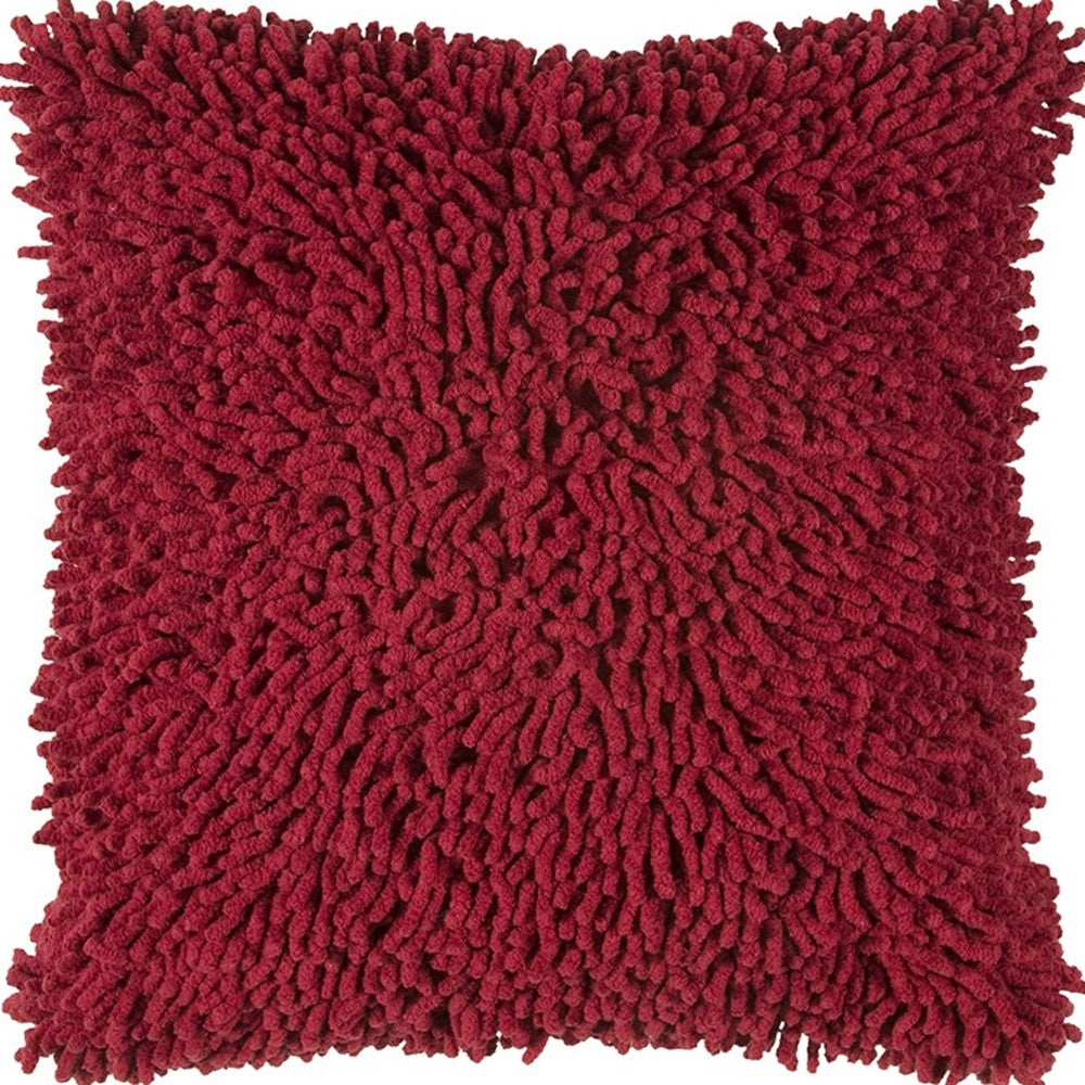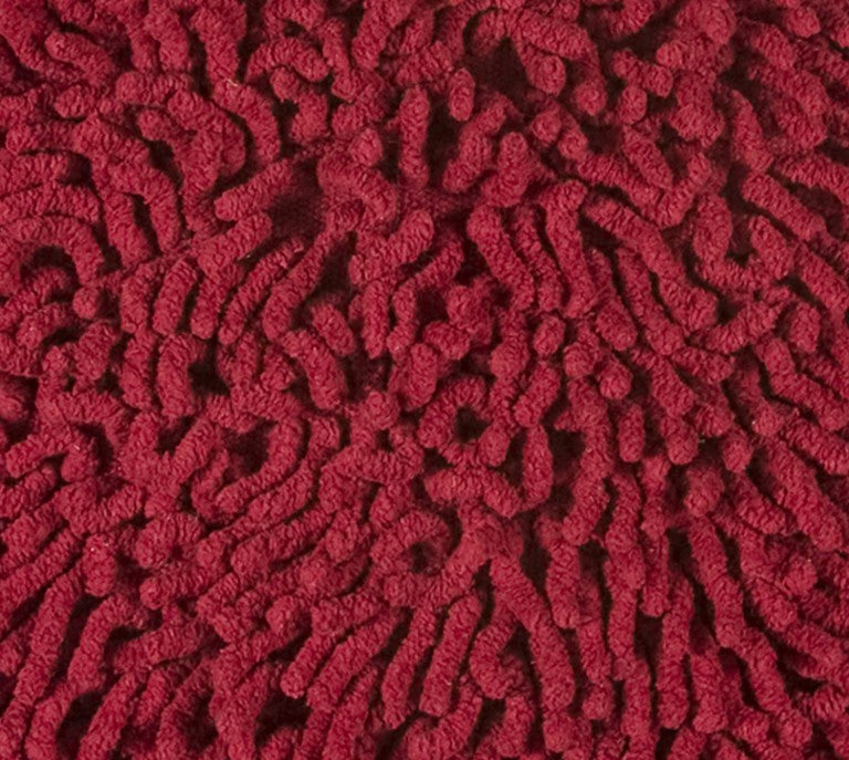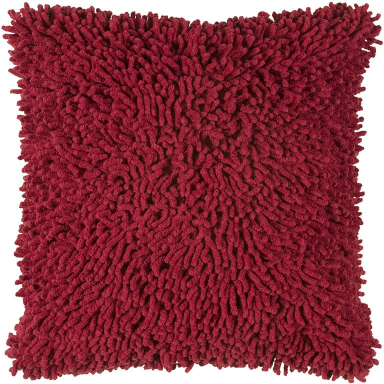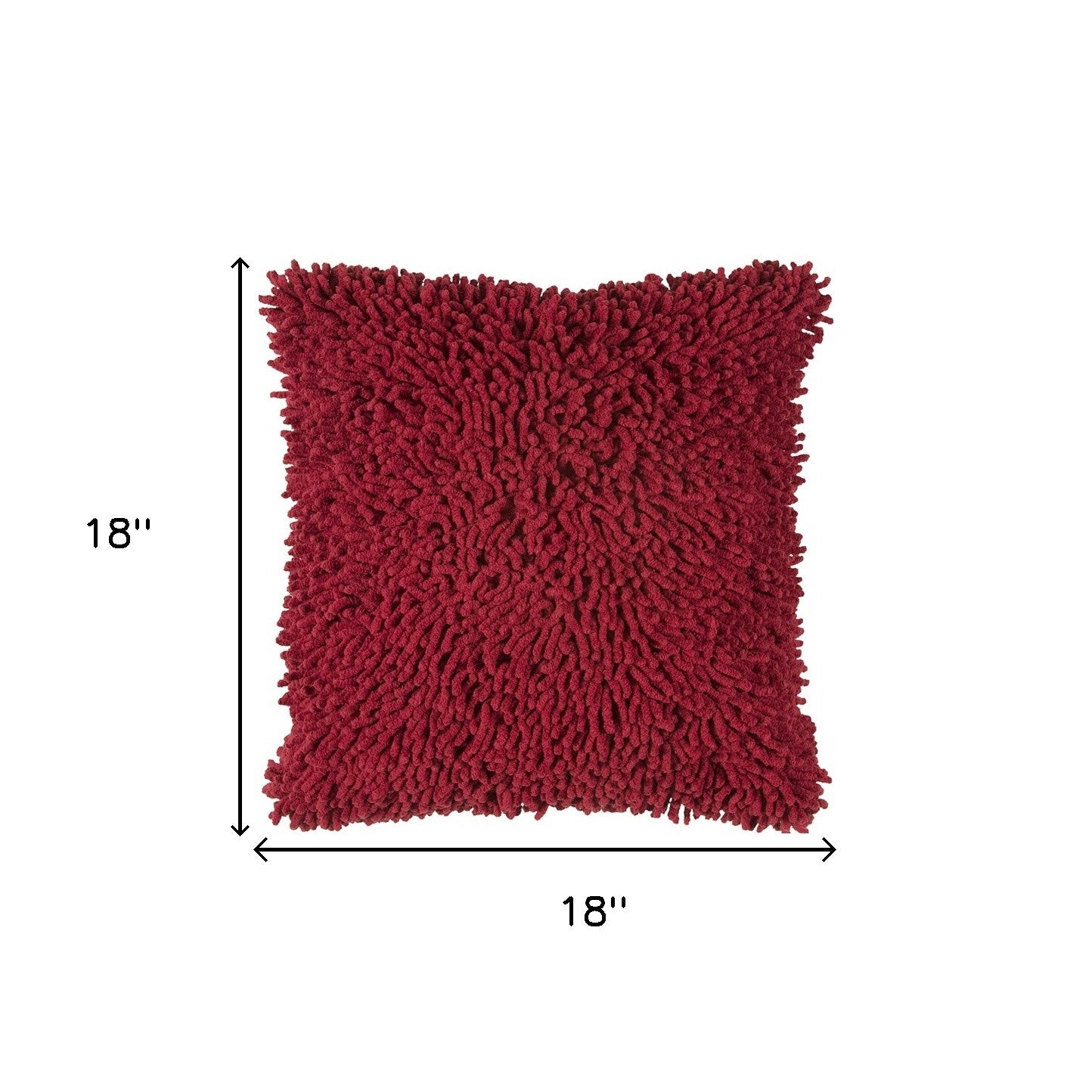 Layer your living room with this trendy Red Textured Modern Throw Pillow that will add a dimension to your interior decor while being a plush accent on the sofa or seating space. Featuring strands of heavily textured fibers in crimson red suspended from the surface, this pillow is meant to add a luxurious touch to any modern or casual space. Crafted from a blend of cotton and chenille fibers for enhanced durability and utmost softness that will ensure maximum comfort to your neck and back. This down-filled pillow features a durable duck cotton fabric back with a hidden zipper closure for a seamless finish, making the pillow easy to fill and clean whenever needed. Give your living space a modern look with a welcoming feel as you bring home this soft and cuddy throw pillow to pair with neutral decors. 18” x 18” x 6.25”
