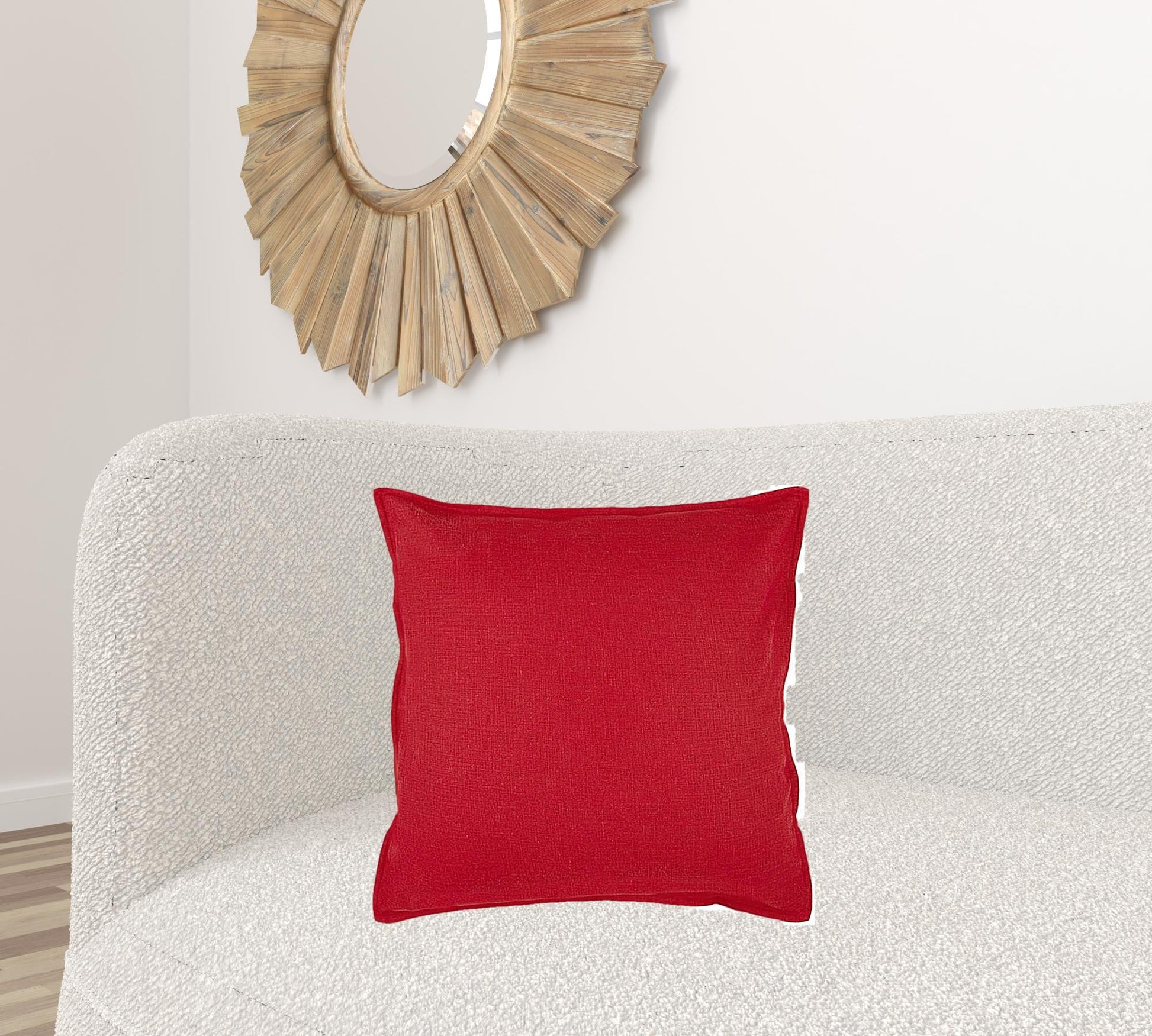This Red Solid Flange Edged Modern Throw Pillow is a perfect accent to bring a minimalist style into your home with pops of colors in the room. Simple and modern in tones and texture, this pillow features a solid ruby red base framed with a same-toned flange around the edges to give it a sophisticated look with a classic touch. Crafted with high-quality cotton slub fabric that has large and small denier yarns to ensure a linen like finish for a perfect balance of softness and durability. This poly filled pillow comes with a hidden zipper closure at the back that makes the pillow fill and clean with no sweat. Place this pillow with any neutral shades of decor and it will stand out in an instant giving your modern space a distinctive appearance. 20” x 20” x 6.25”