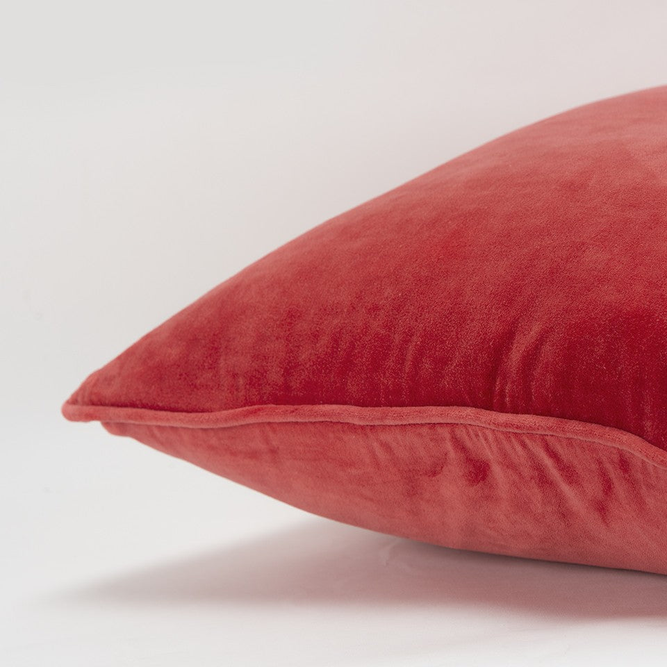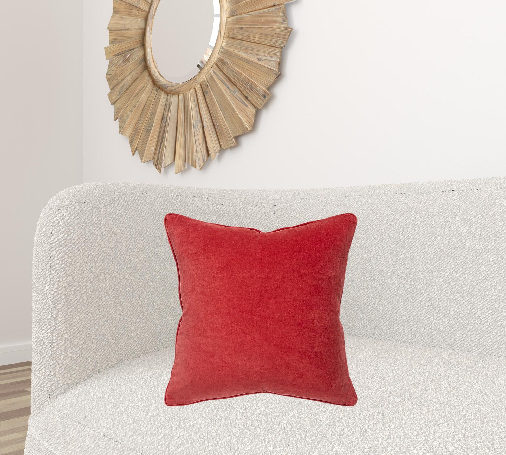 Let this Red Solid Luxurious Modern Throw Pillow brighten up your living space with pops of colors to add a lively spirit to the room. Featuring a solid apple red base with a subtle sheen that’s sure to add a sense of luxury and modern glam to your interior décor. Crafted from the softest cotton velvet material for a plush and cozy feel on the touch with long-lasting durability. The pillow is wrapped with the same coordinating fabric on the back with a hidden zipper that makes it easy to fill and clean. With a soft and sumptuous polyfill insert, the pillow helps you sit or lie against it with utmost comfort while providing maximum support to your back for a perfect posture. The pillow is self-welted for a clean and defined look around the edges, making it a luxurious decorative accent to pair with a range of modern themes and colors. Pair this pillow with your choice of light or bold-toned decors, and it will create a striking contrast or a harmonious balance to spruce up your living space. 20” x 20” x 6.25”
