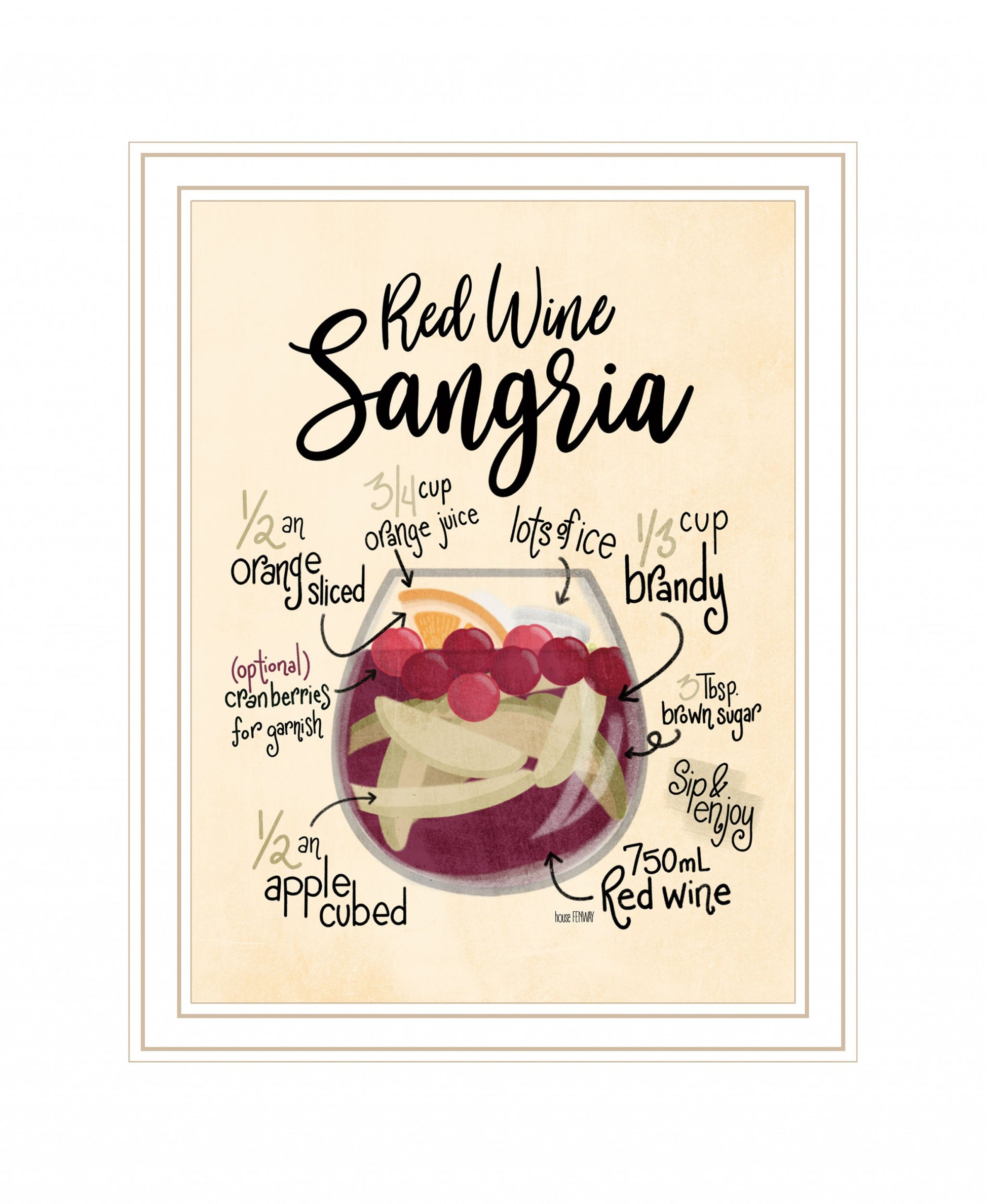 Add an air of fashion to your room and rejuvenate the space with this red wine sangria white framed print wall art. This print is a visual artistic expression that allows you to decorate your space in style. Reproduced for you on wood, this hanging decorative accent will be a trendy and fashionable way to dress your walls in a rustic and modern farmhouse vibe. Hang on your wall to add some up to date fashion and decoration. Utilize this opportunity to create a focal point in the room with this fabulous wall decor option. 18 inches H x 14 inches W x 1 inches D