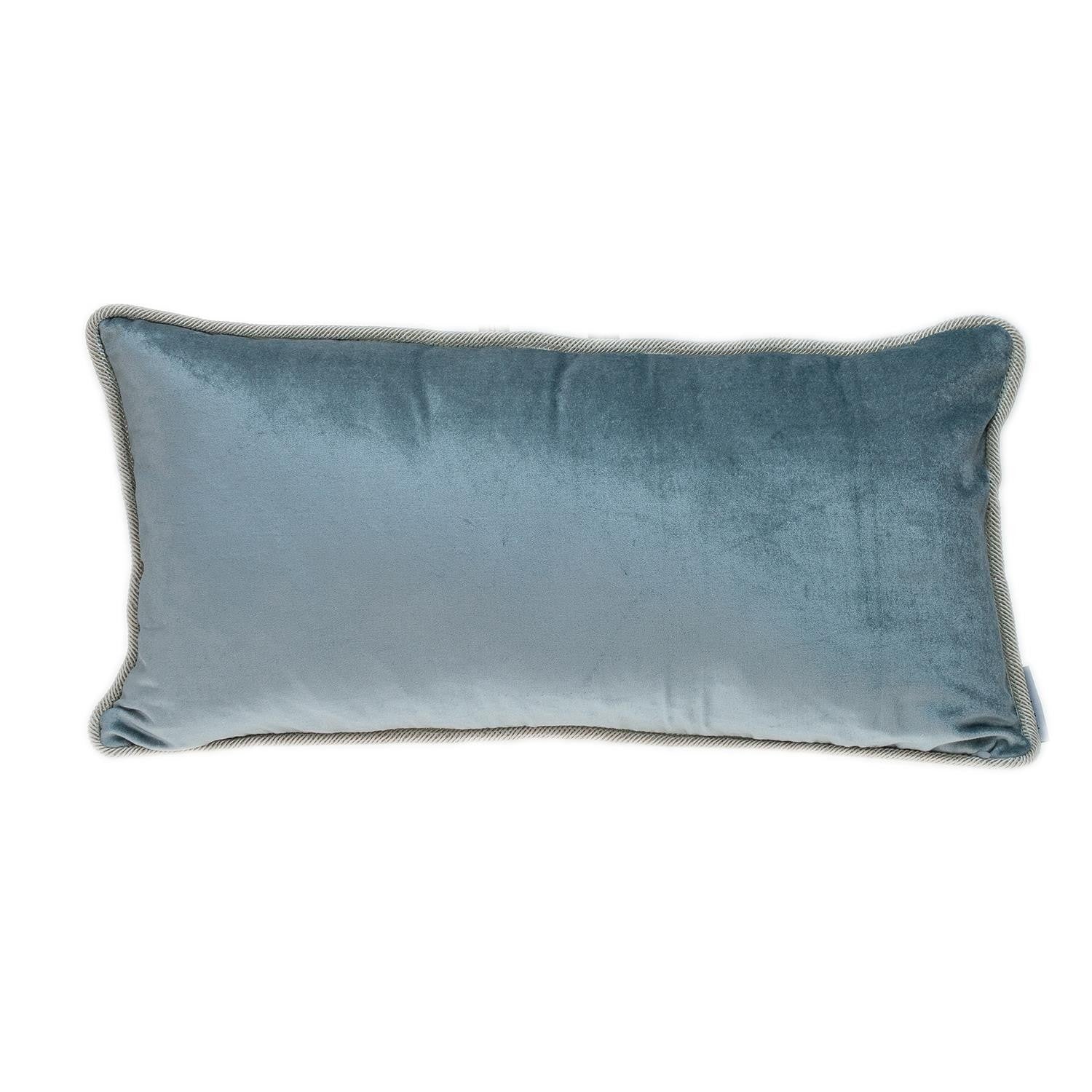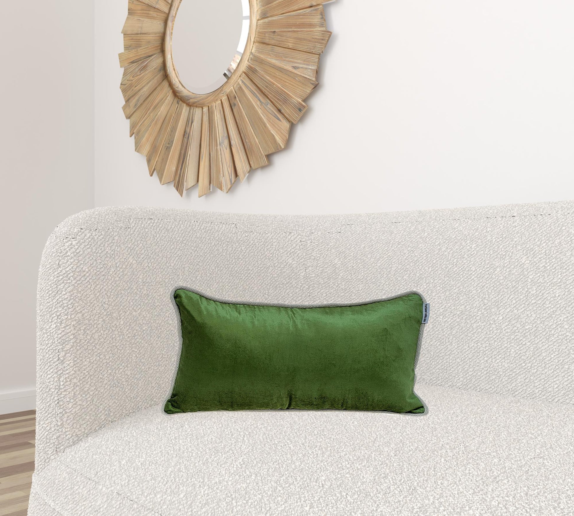 Style meets comfort with the Reversible Sky Blue and Moss Green Lumbar Velvet Throw Pillow. Crafted from a selection of plush materials, accentuate your home with this unique dual tone vision and bring a little personality to your space. The beautiful bold colors on both sides are emphasized with a fresh breeze of linen cord piping that adds a subtle highlight to this work of art. The sheer glossy shine of the delicate velvet adds a soft and elegant touch, accenting the aesthetic luxuriousness of any space. 12" x 24" x 4"