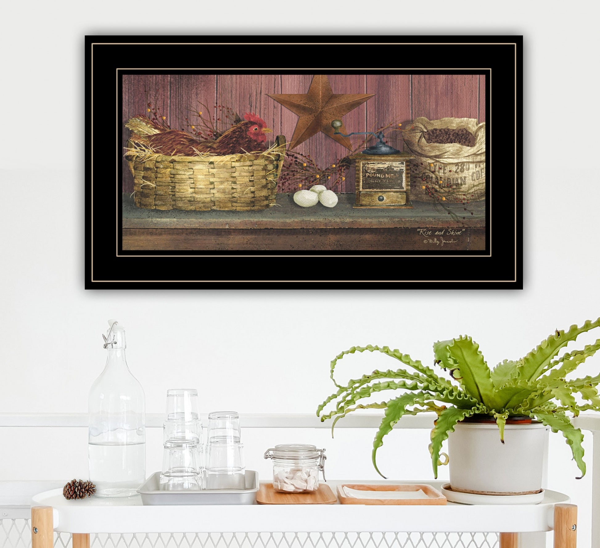 This rise and shine 2 black framed print wall art will add a beautiful decorative accent to your decor. This print is a visual artistic expression that allows you to decorate your space in style. Reproduced for you on paper, this hanging decorative accent will be a trendy and fashionable way to dress your walls. Hang on your wall to add some up to date fashion and decoration. Utilize this opportunity to create a focal point in the room with this fabulous wall decor option. 12 inches H x 21 inches W x 1 inches D
