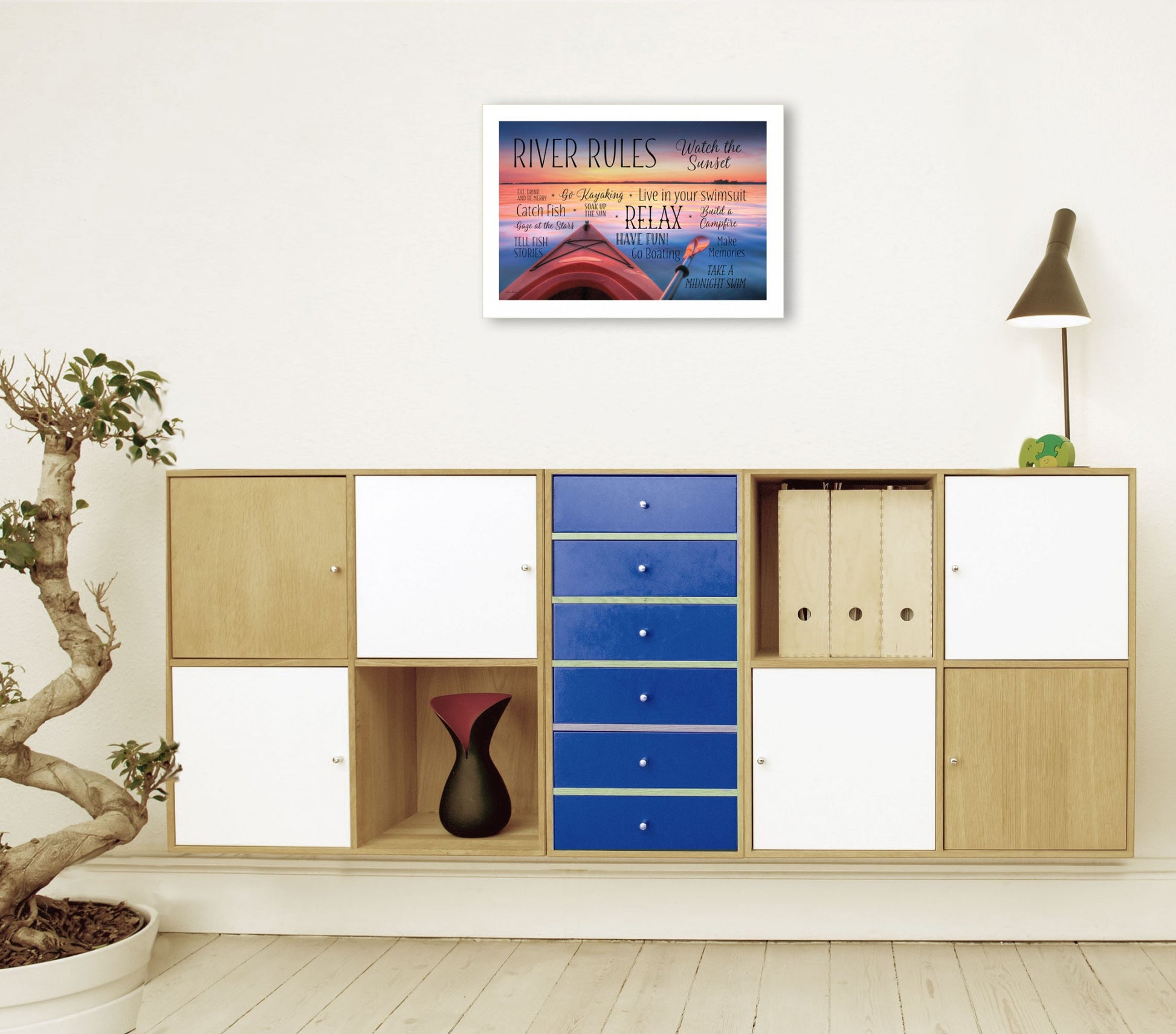 Unique and decorative, this river rules 2 white framed print wall art will leave a lasting impression. This print is a visual artistic expression that allows you to decorate your space in style. Reproduced for you on paper, this hanging decorative accent will be a trendy and fashionable way to dress your walls. Hang on your wall to add some up to date fashion and decoration. Utilize this opportunity to create a focal point in the room with this fabulous wall decor option. 14 inches H x 20 inches W x 1 inches D