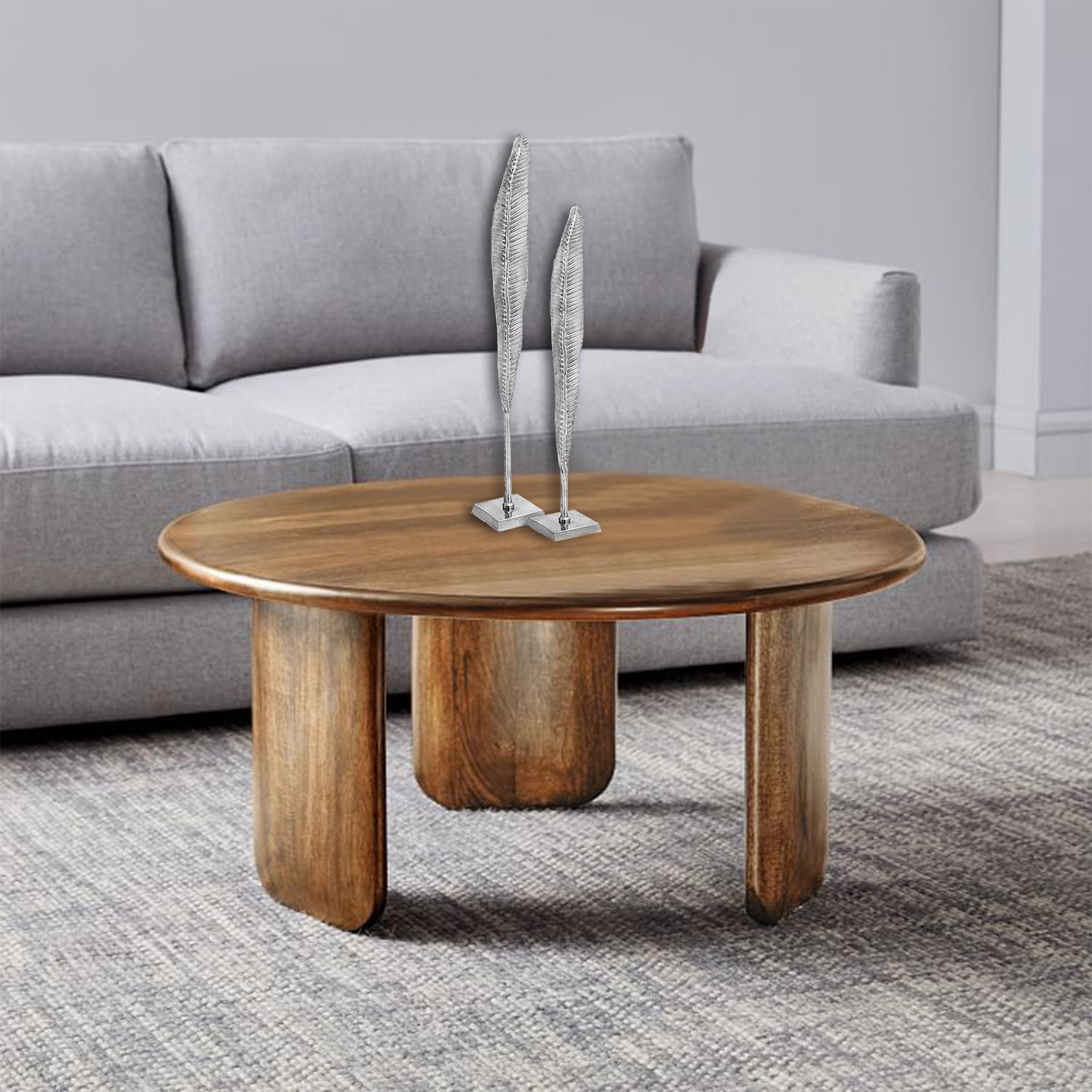 Rough Silver Tall Thin Set Of 2 Leaves
