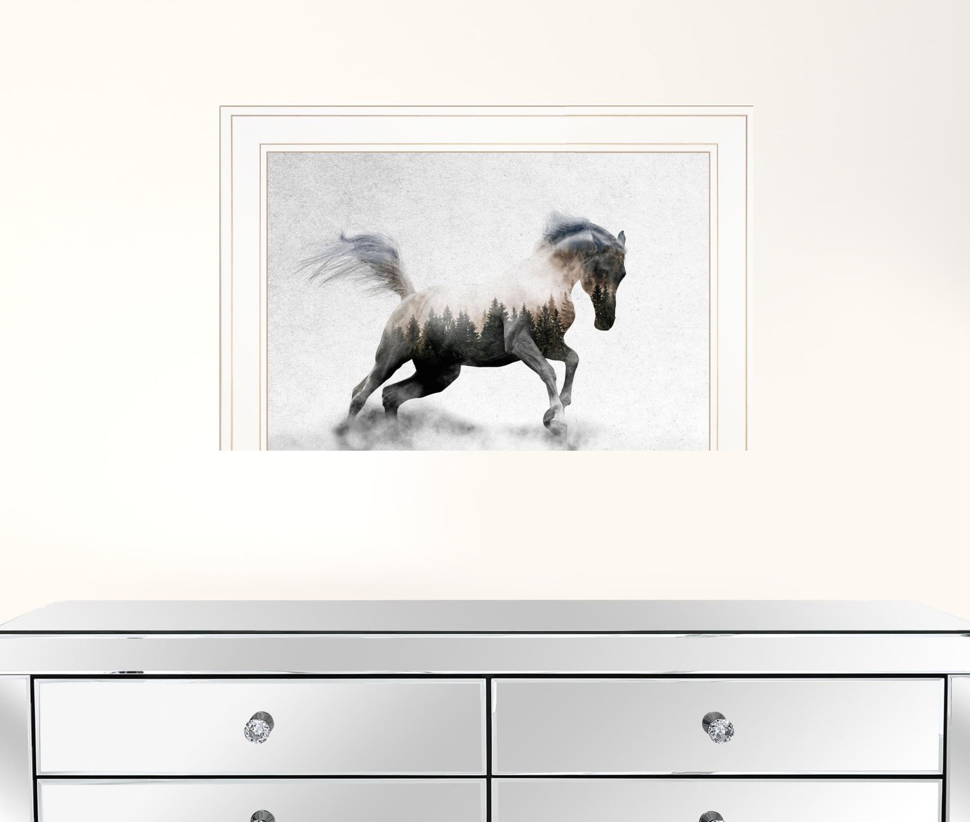 Add an air of fashion to your room and rejuvenate the space with this running white stallion 1 white framed print wall art. Update your walls with this farm animal decor. This print is a visual artistic expression that allows you to decorate your space in style. Reproduced for you on paper, this hanging decorative accent will be a trendy and fashionable way to dress your walls. Adding this hanging wall art to your space to make your room feel more finished and attractive. Instantly liven up your space with this art that brings color and dimension to your walls. 15 inches H x 19 inches W x 1 inches D