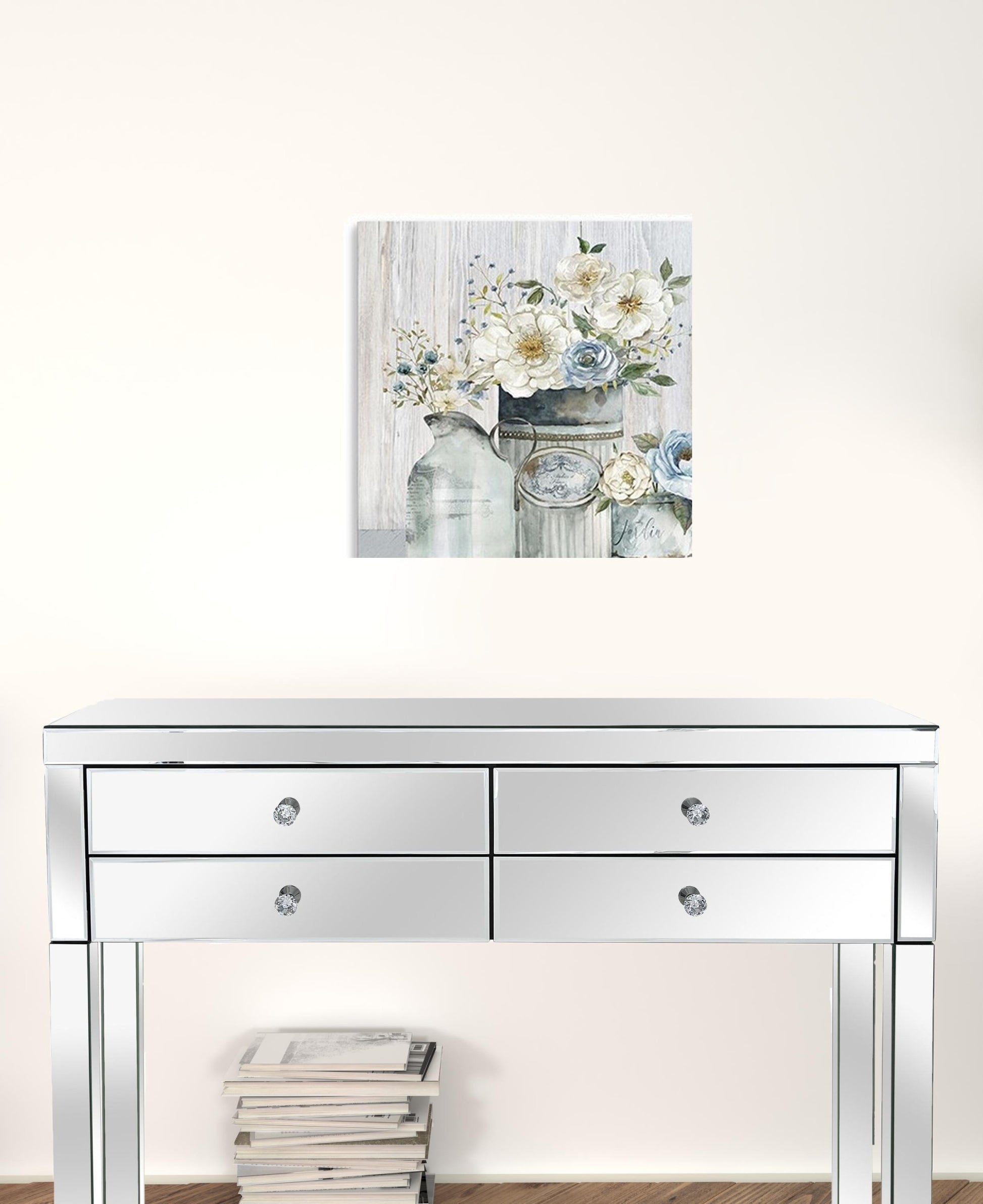 This rustic grey flowers unframed print wall art will add a beautiful decorative accent to your decor. This print is a visual artistic expression that allows you to decorate your space in style. Reproduced for you on canvas, this hanging decorative accent will be a trendy and fashionable way to dress your walls. Adding this hanging wall art to your space to make your room feel more finished and attractive. Instantly liven up your space with this art that brings color and dimension to your walls. 20 inches H x 20 inches W x 1.25 inches D