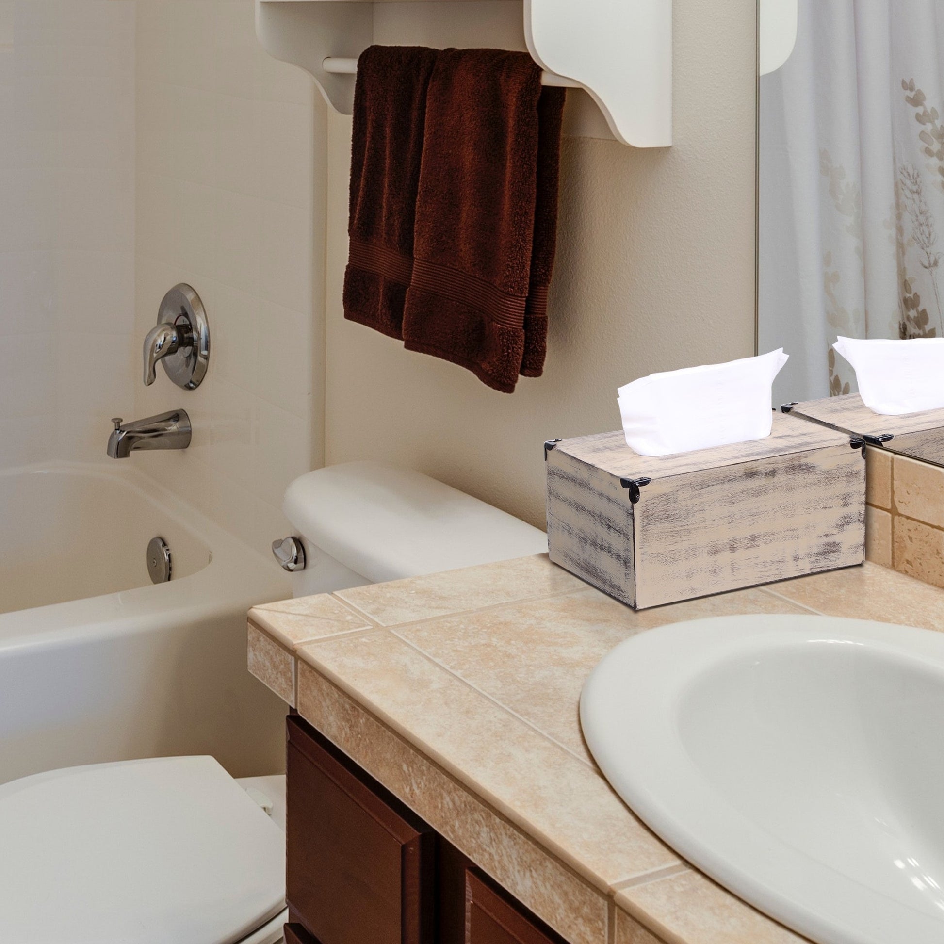 Literally change the way you see tissue boxes with this updated farmhouse chic Rustic Pale Yellow Wash Mango Wood Rectangular Tissue Holder. Say no more to those unsightly cardboard tissue boxes on your counters, tables and desks. Upgrade to this great looking handmade decorative wood tissue box cover that will elevate your space. Our distressed pale chalky yellow wash over natutral brown wood tissue box cover is handmade from sustainable Mango wood that is eco-friendly, accented with black metal corner details, and can be used for years to come. Fits most rectangular tissue boxes - even the smaller ones. When the box is empty, you can easily slide out the bottom panel to restock it. Tissue Box Holders create an ideal gift for your friends and family who love to keep everything in order. 6.4" x 10.2" x 4.5"