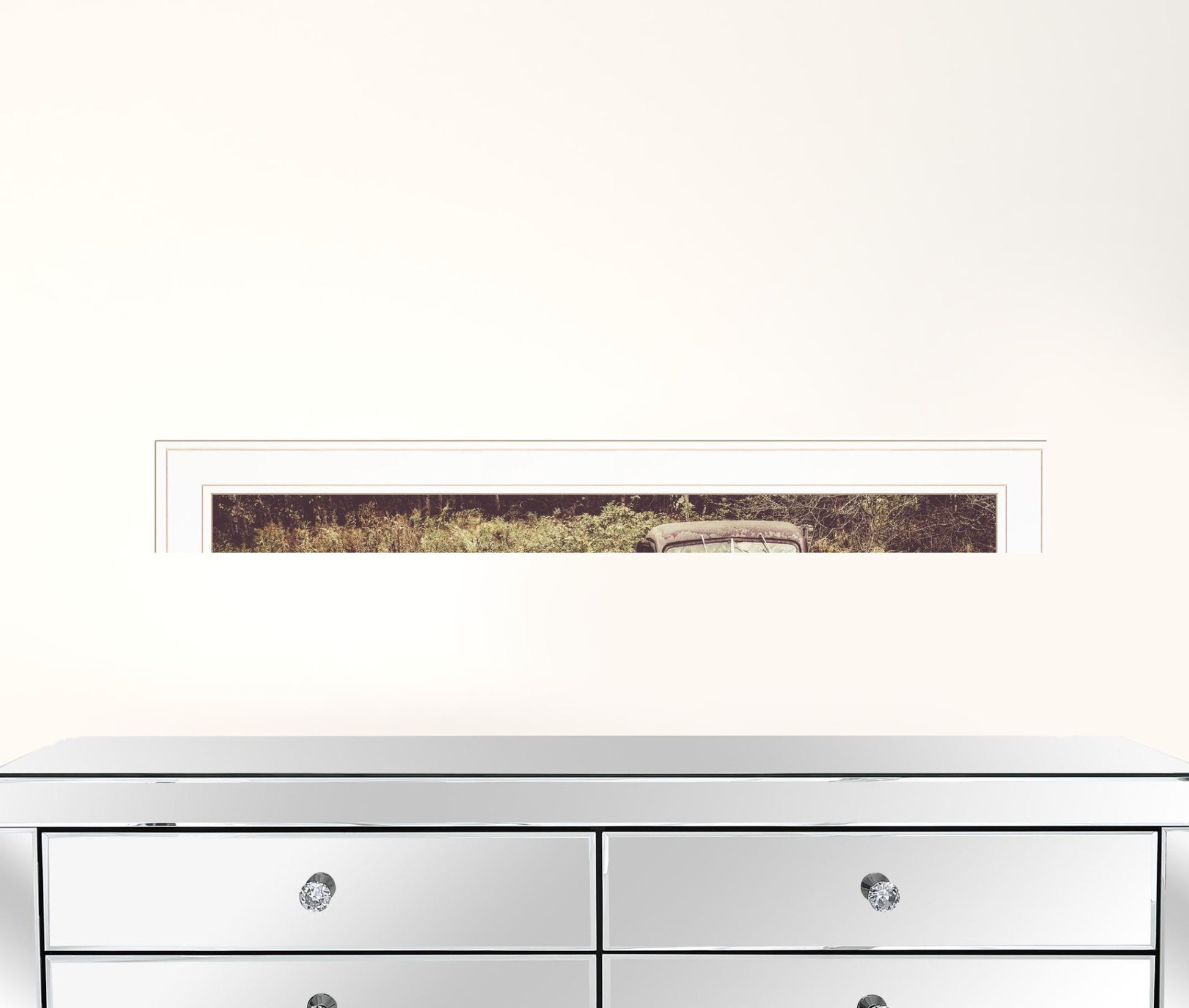 The rusty clearing 1 white framed print wall art is the perfect decorative accessory for your home. This transportation inspired wall art features a old car icon and will bring a refreshing look and perspective to your walls. This print is a visual artistic expression that allows you to decorate your space in style. Reproduced for you on paper, this hanging decorative accent will be a trendy and fashionable way to dress your walls. Adding this hanging wall art to your space to make your room feel more finished and attractive. Instantly liven up your space with this art that brings color and dimension to your walls. 11 inches H x 27 inches W x 1 inches D