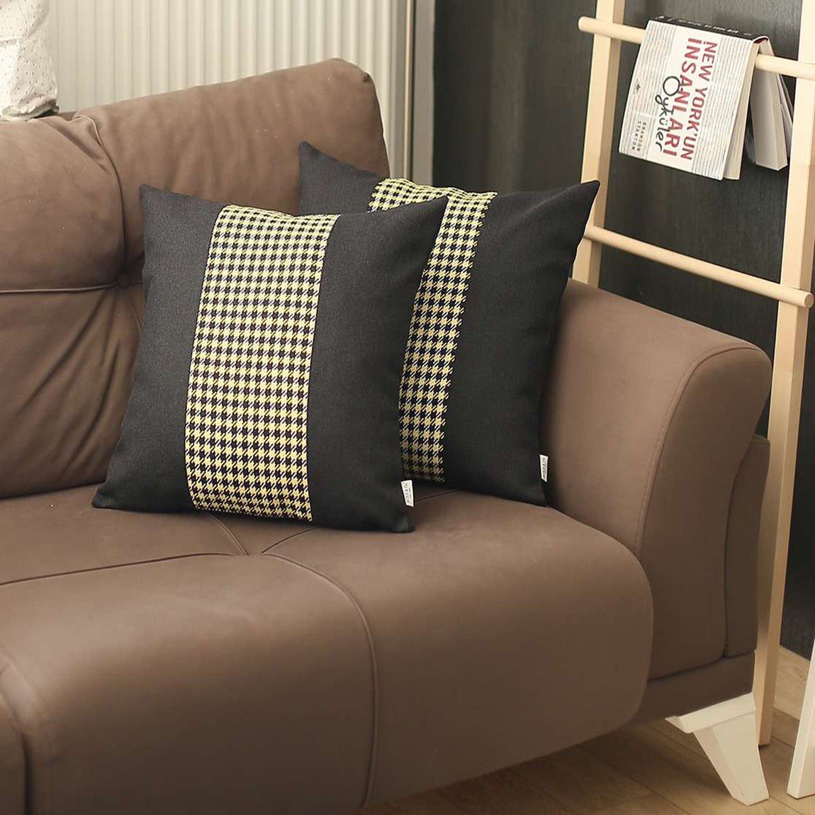 Set Of 2 Black And Yellow Houndstooth Pillow Covers