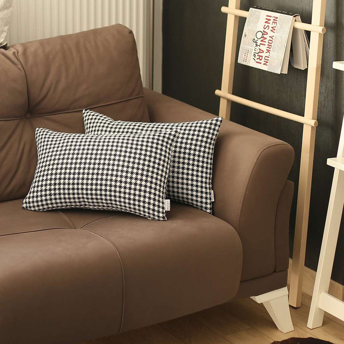 Set Of 2 Black Houndstooth Lumbar Pillow Covers