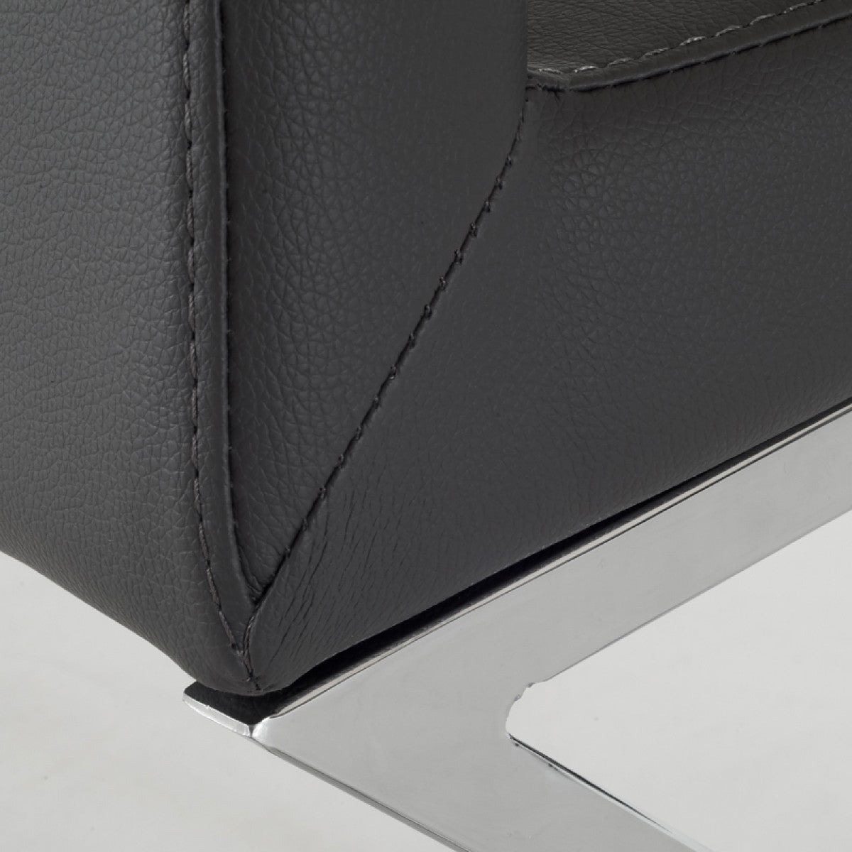 Unique and contemporary, these Modern Gray Faux Leather and Chrome Dining Chairs will be a stand out in your space. Featuring a polished shiny silver-tone chrome frame with the seats and backs upholstered in a super soft white leatherette, these chairs are good looking, comfortable, and practicle for extra seating around the table or even as fun accents in your living space. The intriguing Z-shape chrome base, makes this chair design extra special and extraordinatry. H39" X W17" x D18" each. Set of 2. Seat height of 17".