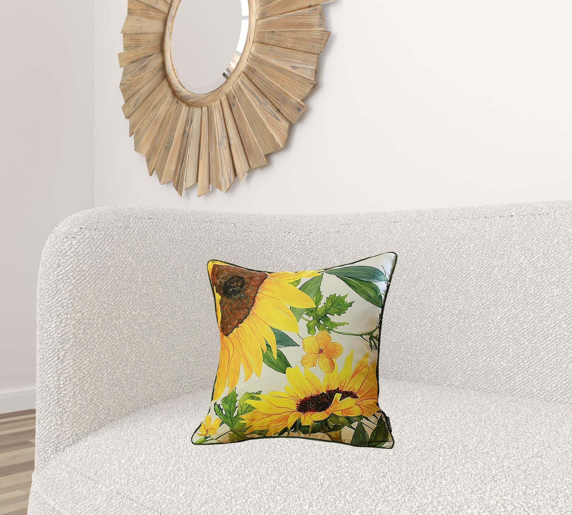 This pair of bold, cheerful, and colorful sunflower pillow or cushion covers will make a perfect decoration for bed, sofa, or chair. These pillow covers are a made from high quality soft brushed polyester and give off cheerful vibes in a beautiful sunflower, yellow and green design. As for caring for them, machine wash, separately with cold water, only on gentle cycle. Do not tumble dry and low iron it on the reverse side. If you want designer look, gorgeous, and long-lasting pillow covers, this is the set for you. 18" x 18" ea.