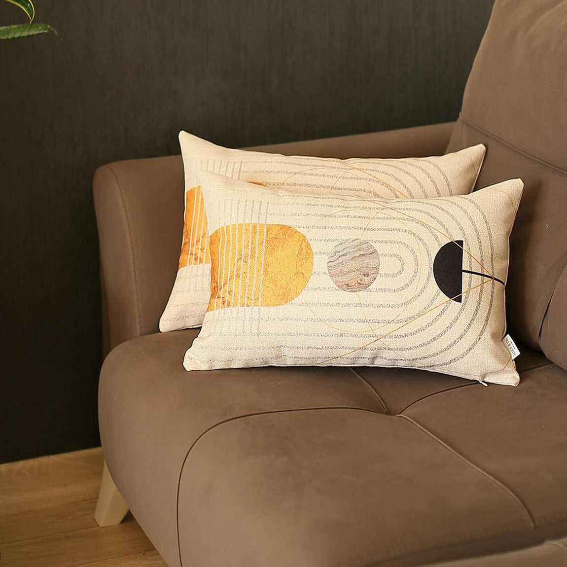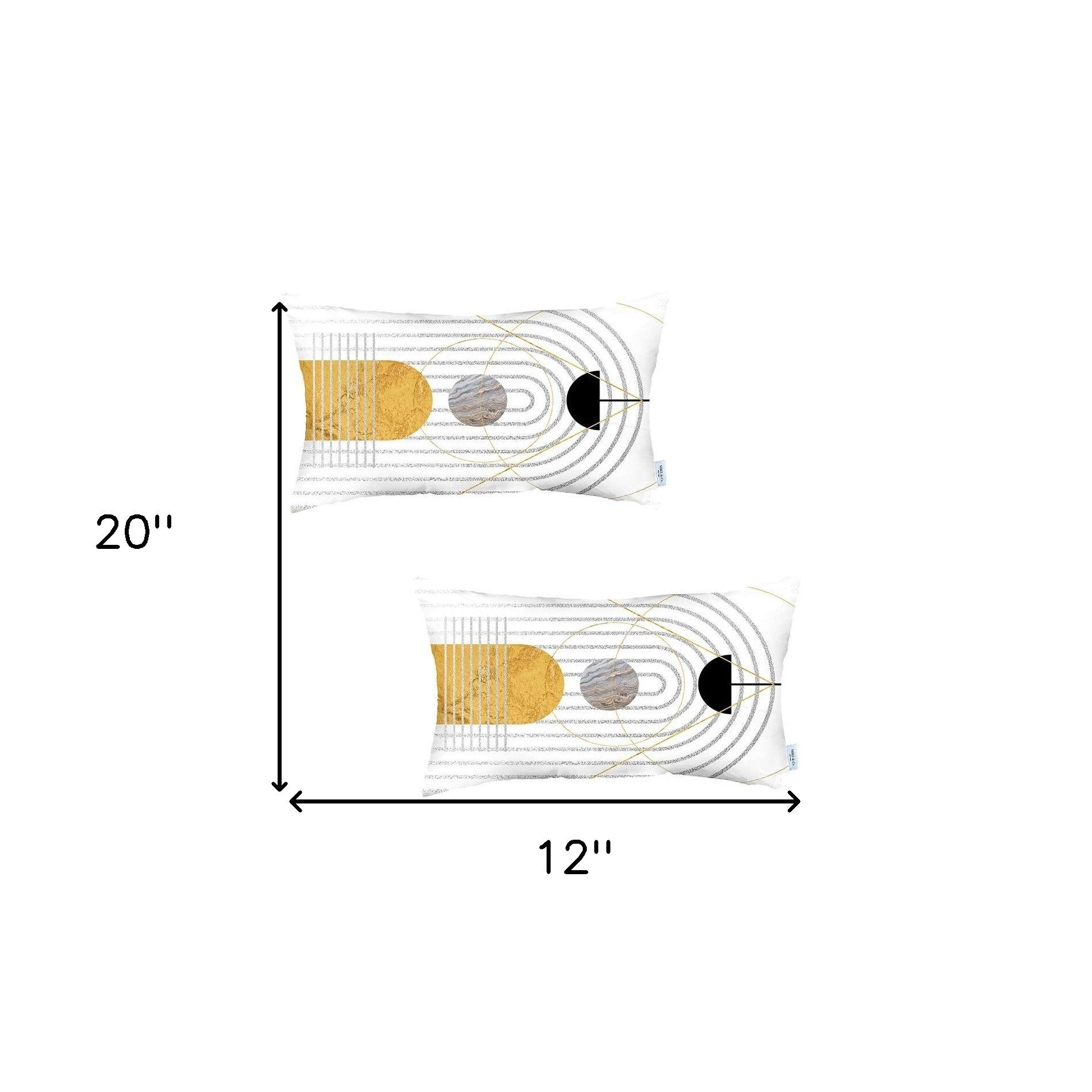 Liven up your living space with this Set of 2 White Patterned Lumbar Pillow Covers that embodies liveliness and comfort in a modern look. This cover demands to be held and touched with its colorful, eclectic patterns on a soft-touch white base. The amazing look and touch of this beautiful handmade cover are ensured with the high-quality OEKO-TEX Standard 100 certified polyester fabric used in the making by Turkish artisans. To make sure the pristine look of this sleek cover stays that way, this piece should only be spot cleaned. The zippers are kept in hidden closures to make the uniform look feel never-ending. Pair this beautiful set of 2 covers with dark or bold colors and watch your living space come to life. 12” x 20” each. Set of 2.