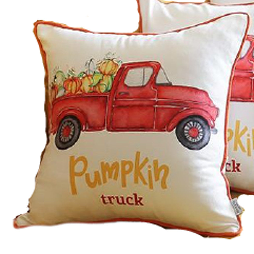 Set Of 4 18" Pumpkin Truck Throw Pillow Cover In Multicolor