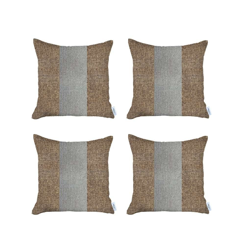 Add depth and timeless elegance to your modern living space with this Set of 4 Brown and White Center Pillow Covers. Being the color of earth and soil, the textured brown base looks comforting with that milky white midsection to accentuate a subtle earthy essence in the room. Made in Turkey with 100% polyester fabric which is OEKO-TEX Standard 100 certified to make sure highest product safety. This pillow cover should only be spot cleaned to remove stains and keep its sheen for long. The all-around zipper closure provides a seamless finish that feels super smooth and unified on the touch. Transform your living room with this unique set of 4 pillow covers that will grab the attention of the guests as soon as they step into your home. 18” x 18” each. Set of 4.