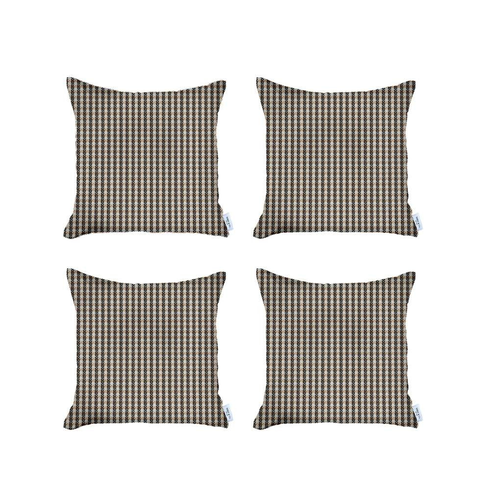 Set Of 4 Tan Houndstooth Pillow Covers