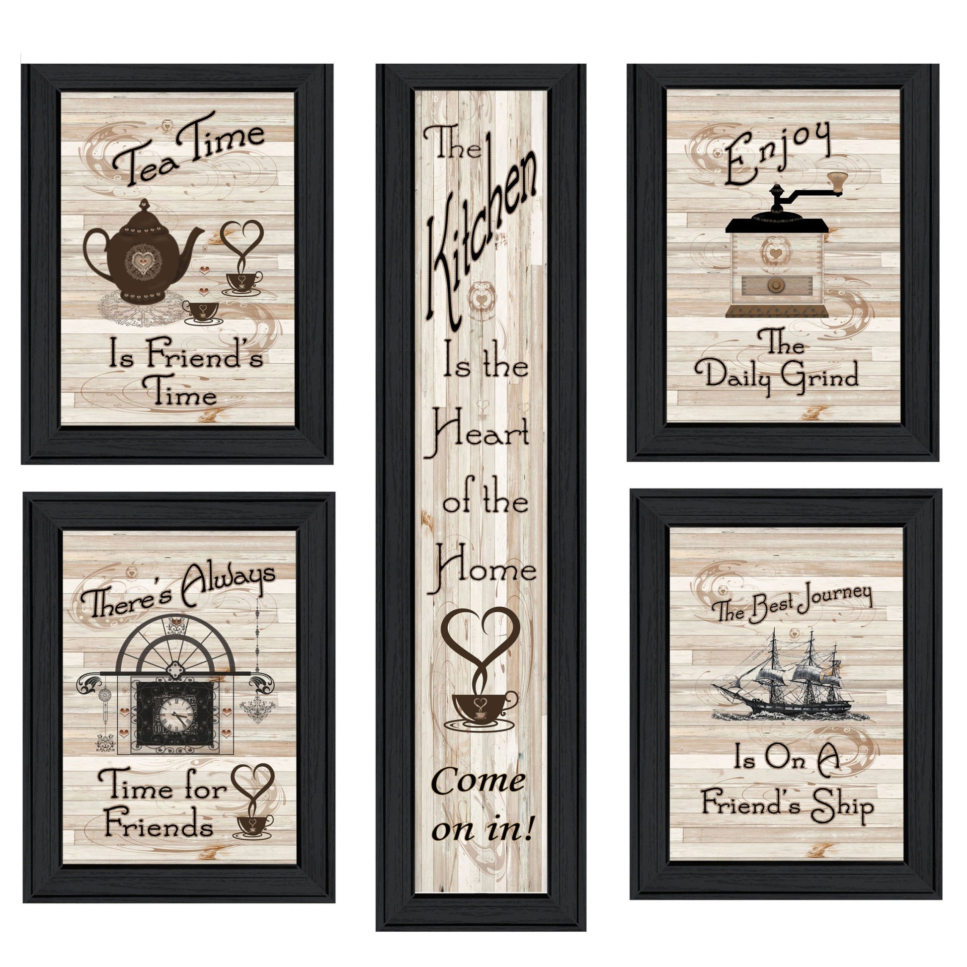Set Of Five Kitchen Friendship 2 Black Framed Print Kitchen Wall Art