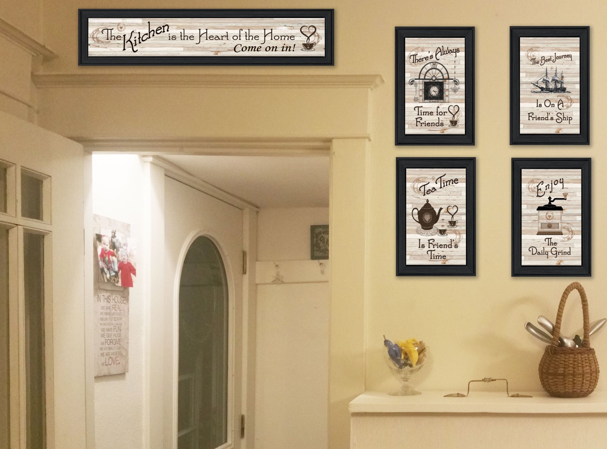 Add an air of fashion to your room and rejuvenate the space with this set of five kitchen friendship collection ii 2 black framed print kitchen wall art. This print is a visual artistic expression that allows you to decorate your space in style. Reproduced for you on paper, this hanging decorative accent will be a trendy and fashionable way to dress your walls. Adding this hanging wall art to your space to make your room feel more finished and attractive. Utilize this opportunity to create a focal point in the room with this fabulous wall decor option. 11 inches H x 33 inches W x 1 inches D