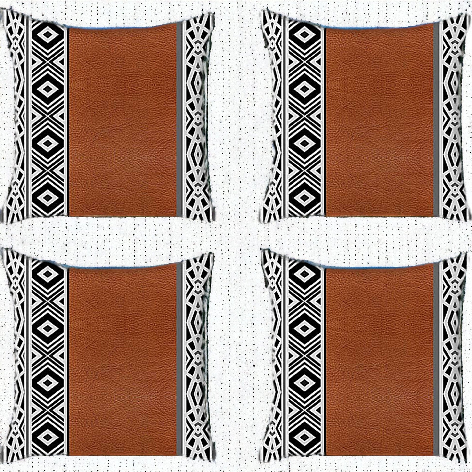 Set Of Four 17" X 17" Brown Faux Leather Geometric Zippered Pillow Cover