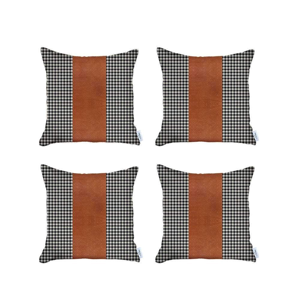 Set Of Four 18" X 18" Black And Brown Houndstooth Zippered Handmade Polyester Throw Pillow