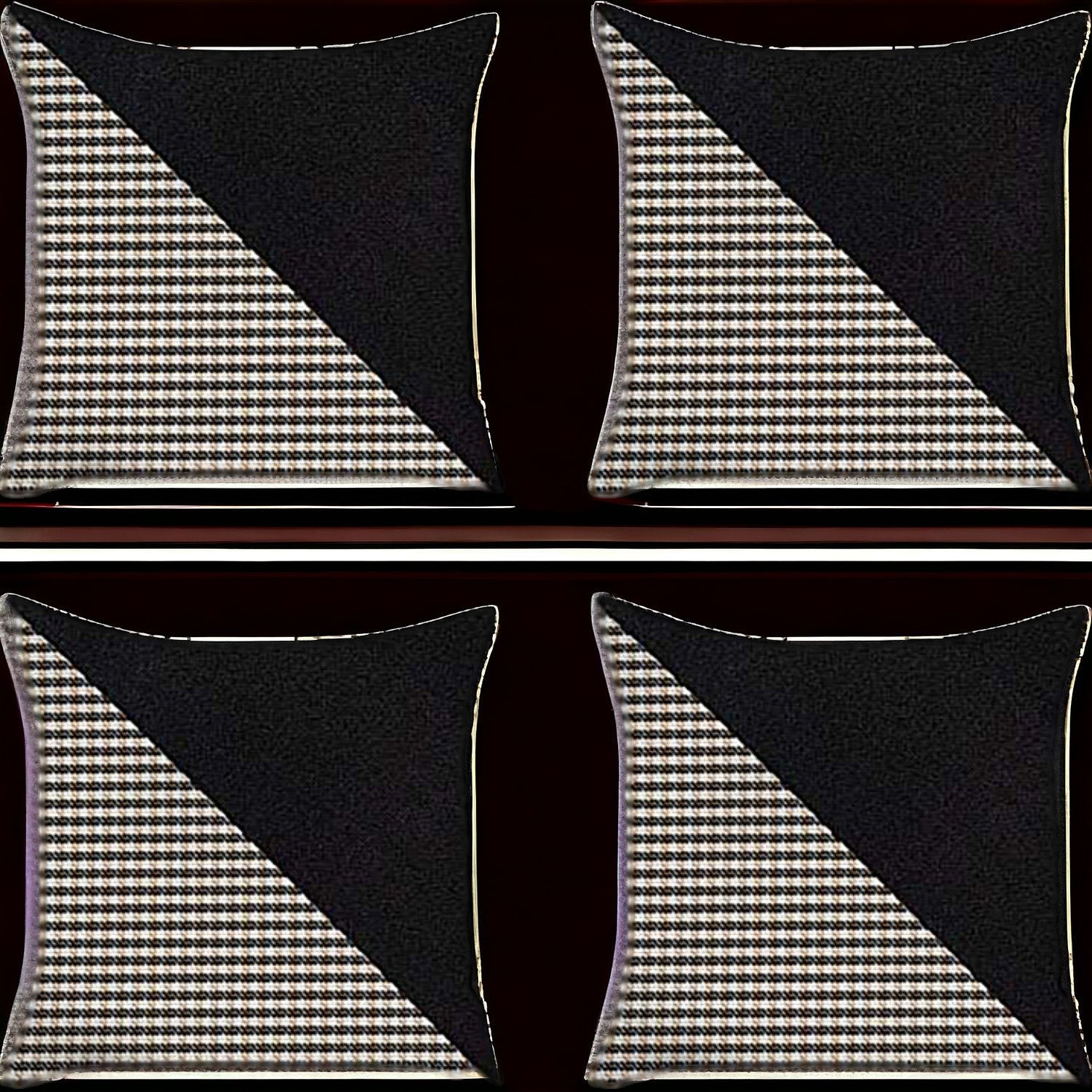 Set Of Four 18" X 18" Black And Brown Polyester Houndstooth Zippered Pillow