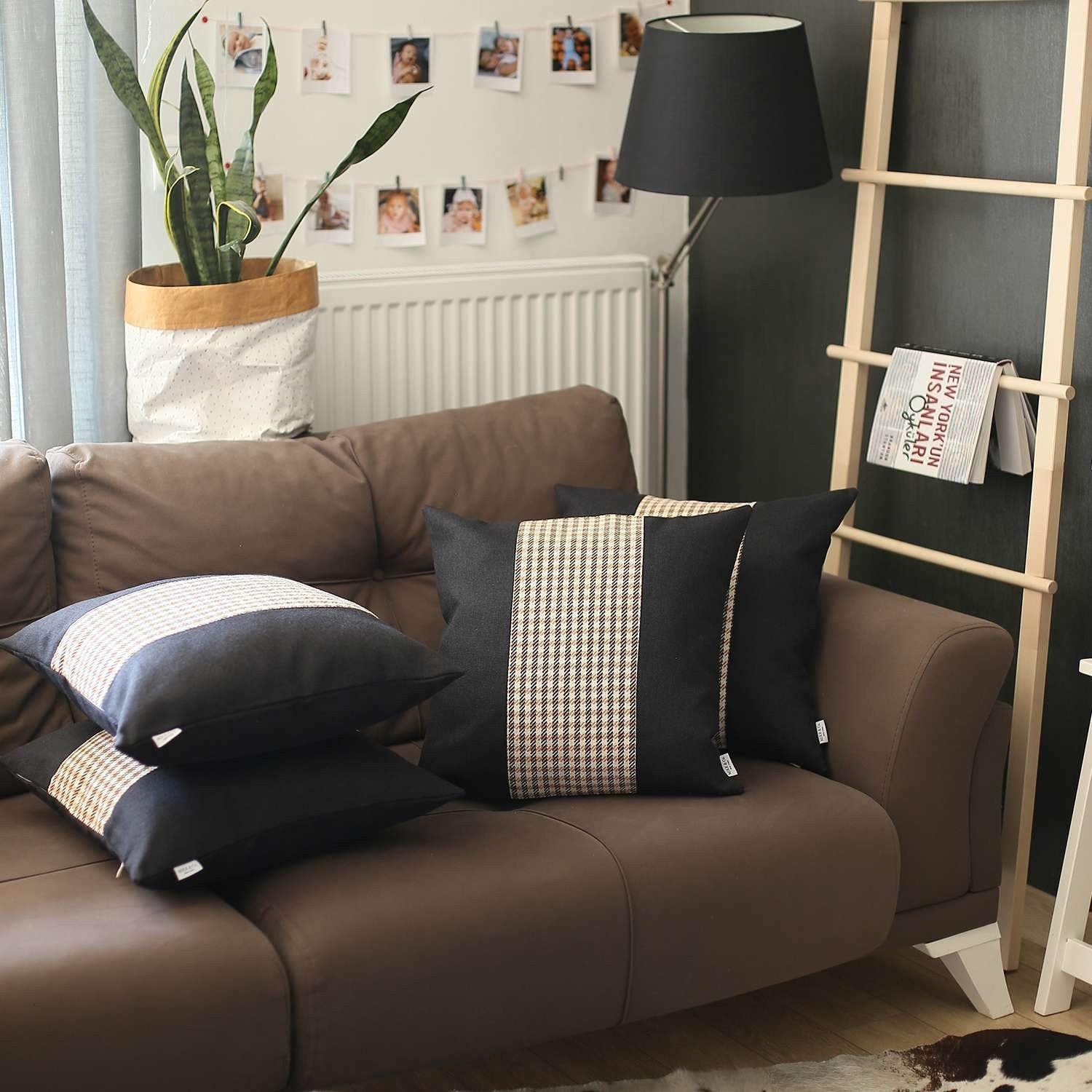 Unique and decorative, this comfortable set of four 18" x 18" black and brown polyester houndstooth zippered pillow will leave a lasting impression. These black and brown hued pillows represent quality construction, expertly made from durable polyester that is not only long lasting but super soft to the touch as well. For anyone that loves to decorate or accent their space with color and texture. A great decorative accessory for your favorite chair, to accent your sofa, or to use as part of your bed ensemble. 6.4" H x 18" W x 18" D