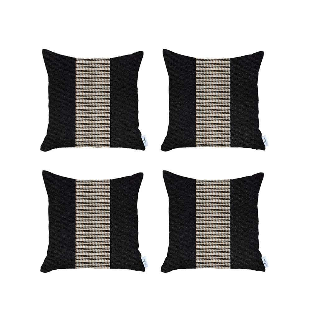 Set Of Four 18" X 18" Black And Brown Polyester Houndstooth Zippered Pillow