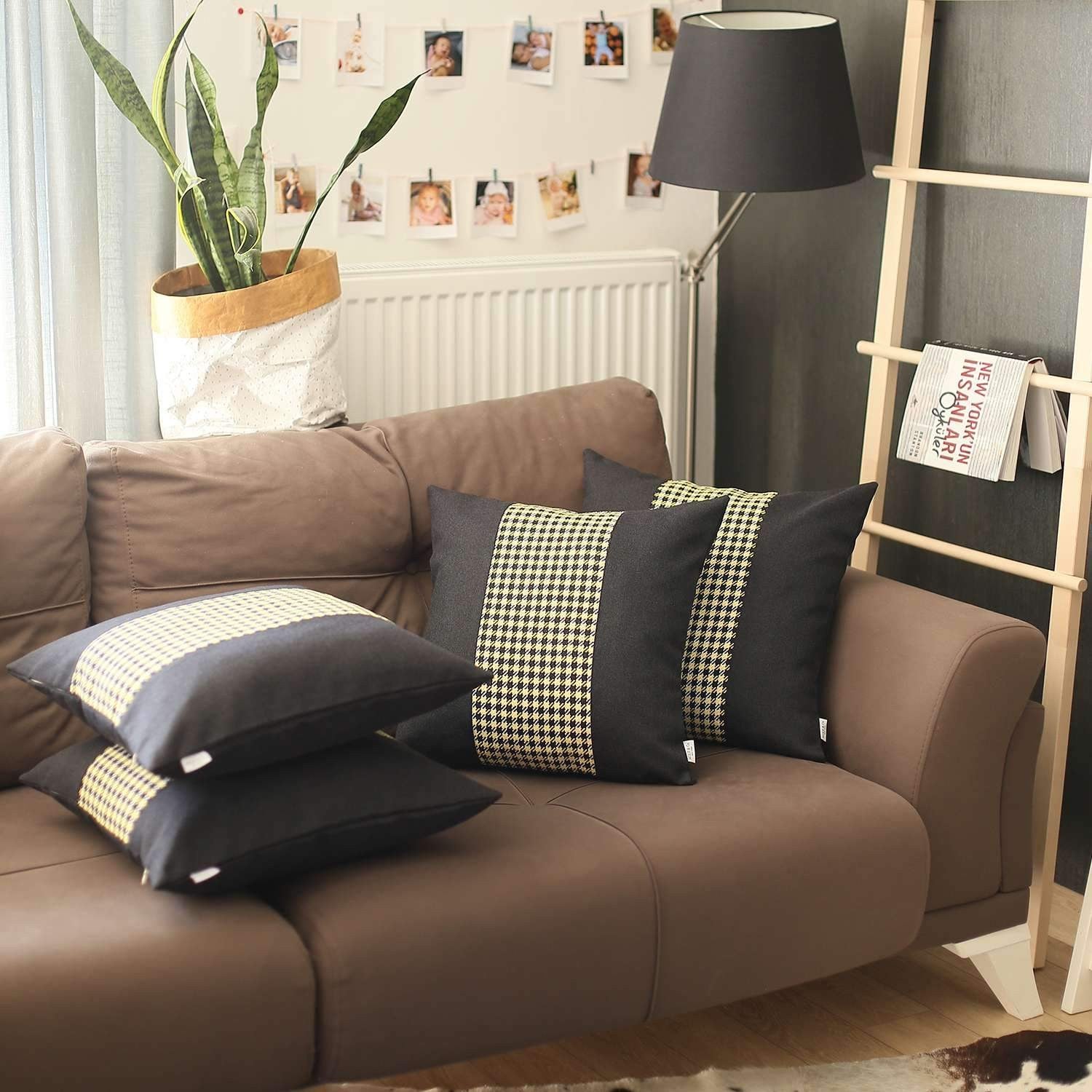 The perfect complement to your sofa, favorite chair, or bed, this set of four 18" x 18" black and yellow polyester houndstooth zippered pillow is a great decorative accent. These great looking soft decorative pillows are expertly made of durable and long lasting polyester in a black and yellow coloration. Decorative throw pillows not only add color and dimension to your space but can be comfy and supportive when you are lounging and cuddling as well. Decorative pillows are a great way to change up the look and feel of your space easily and quickly. 6.4" H x 18" W x 18" D
