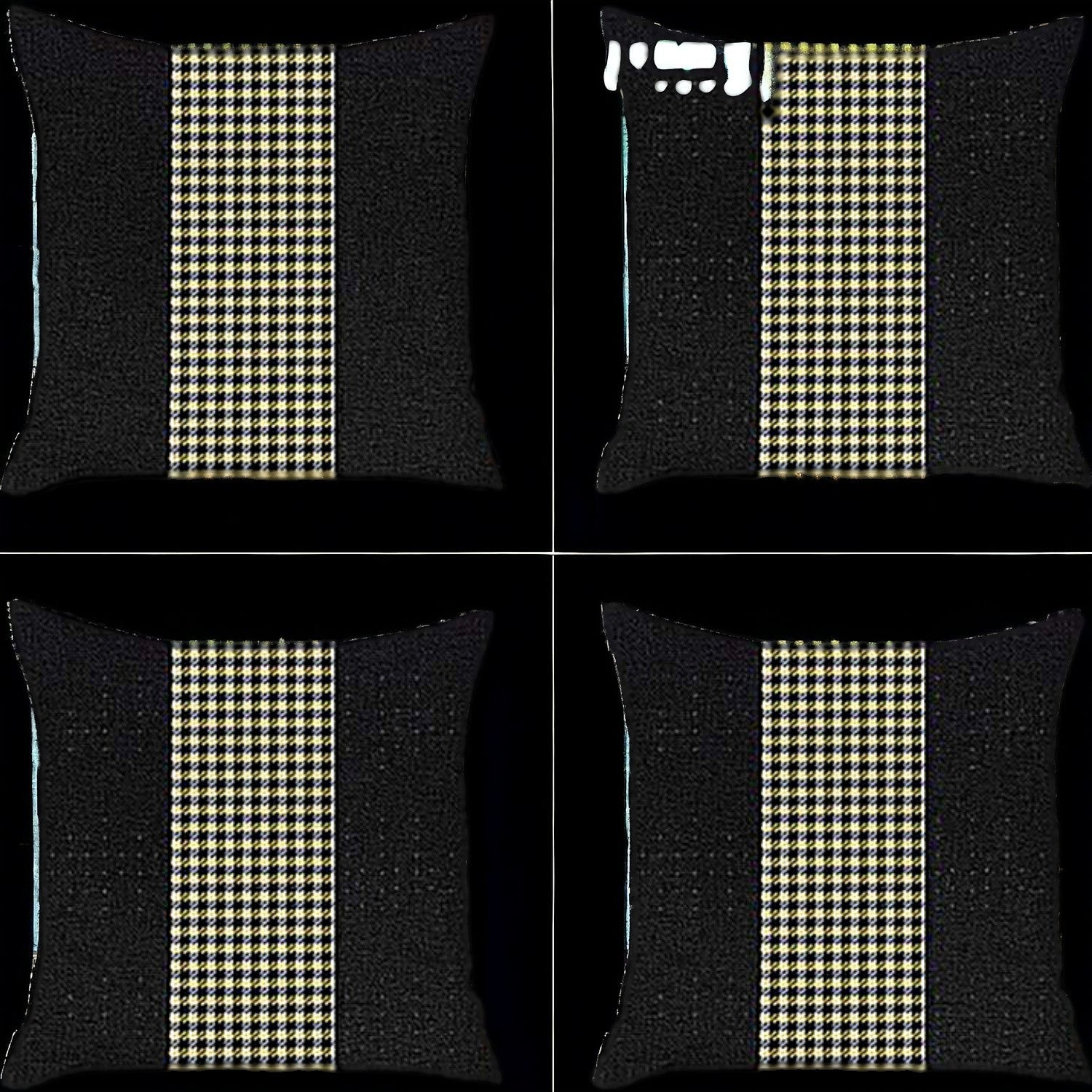 Set Of Four 18" X 18" Black And Yellow Polyester Houndstooth Zippered Pillow