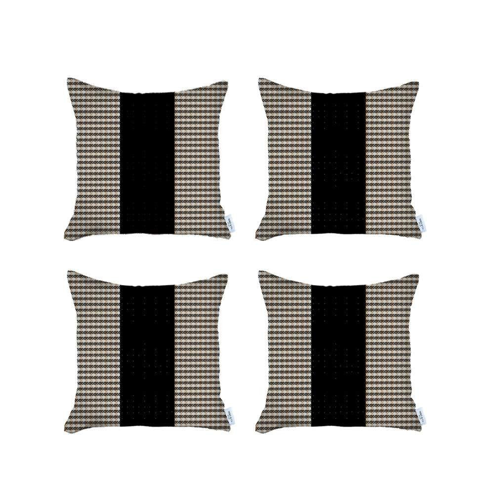 Set Of Four 18" X 18" Brown And Black Houndstooth Zippered Handmade Polyester Throw Pillow