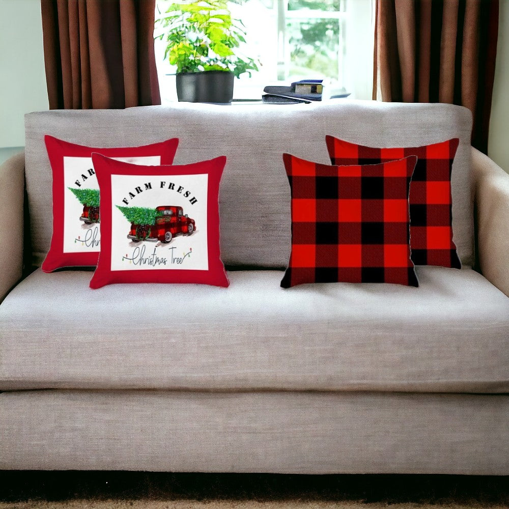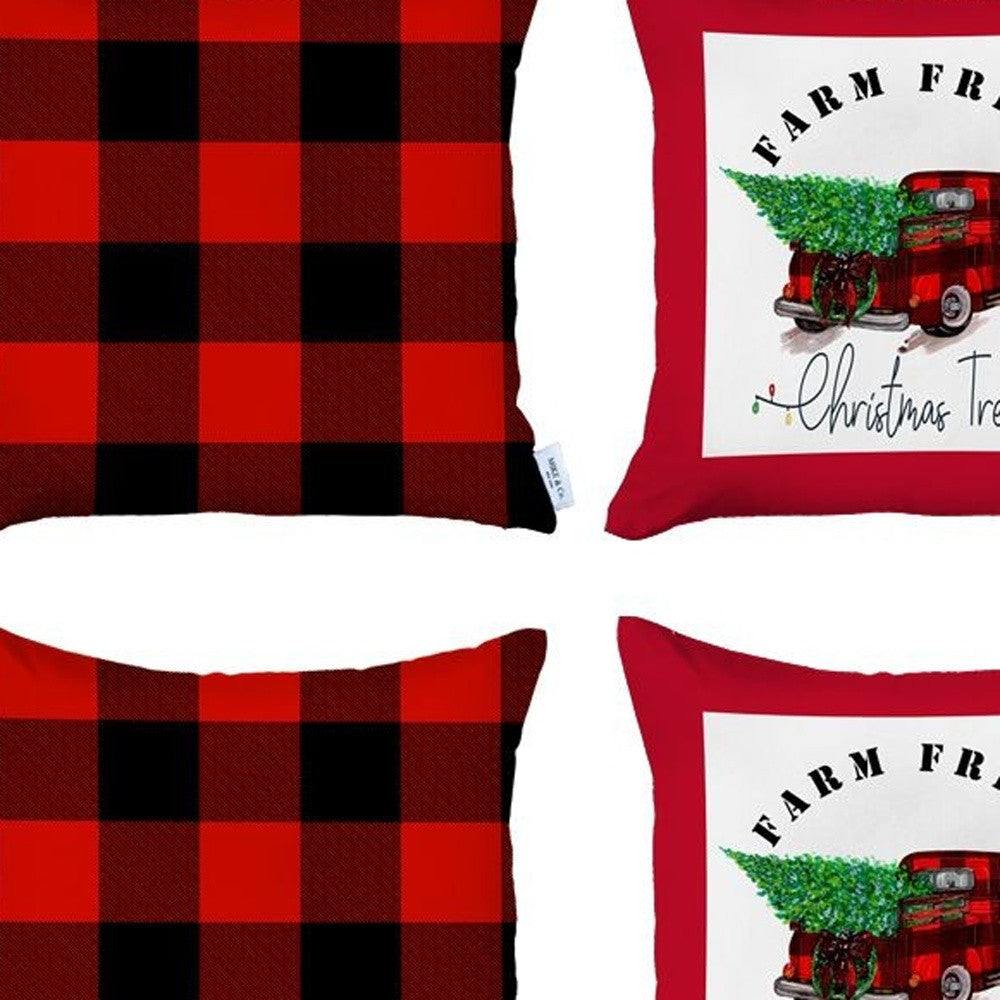 Set Of Four 18 X 18 Red And Black Plaid Zippered Polyester Christmas Tree Throw Pillow Cover
