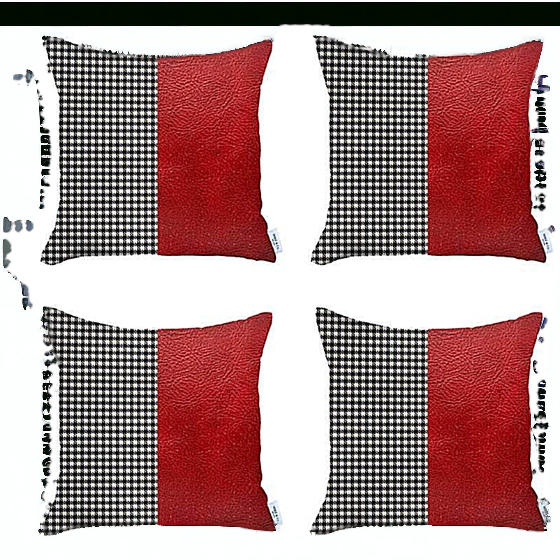 Set Of Four 18" X 18" Red Polyester Houndstooth Zippered Pillow