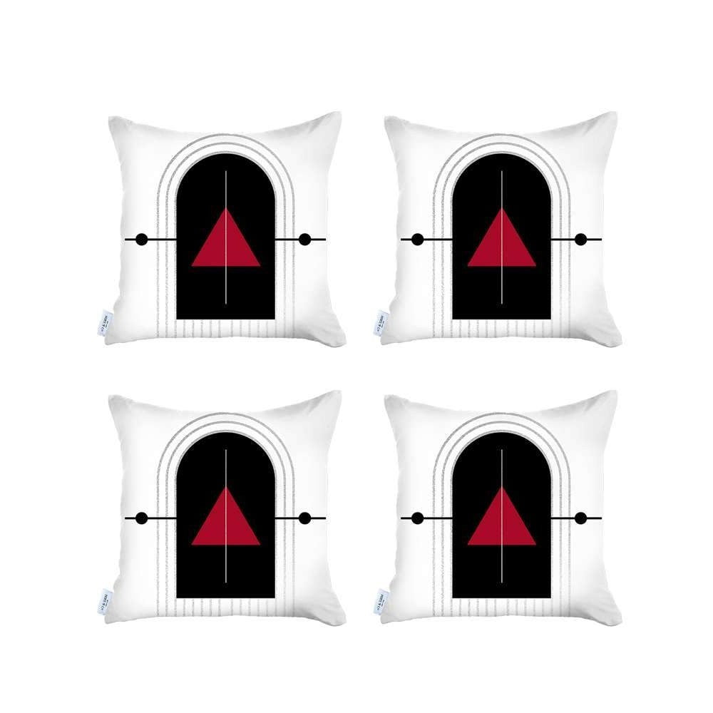 Set Of Four 18" X 18" White Red And Black Polyester Abstract Zippered Pillow
