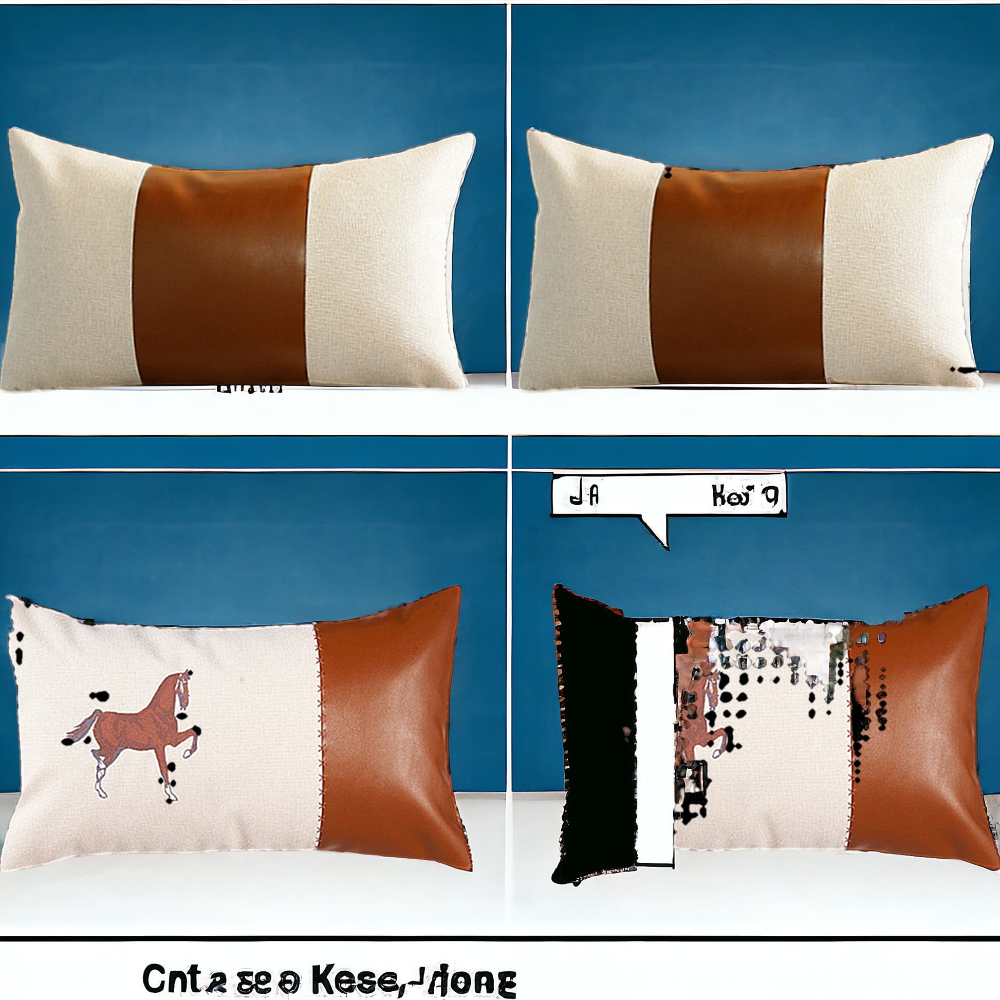 Bring a bit of fashion and zip to your space with this eye-catching and comfy set of four 20" x 12" beige and brown horse faux leather zippered pillow with embroidery. This beige and brown colored decorative pillow set is made from high grade faux leather that is durable and soft to the touch. For anyone that loves to decorate or accent their space with color and texture. Decorative pillows are a great way to change up the look and feel of your space easily and quickly. 4.7" H x 20" W x 12" D