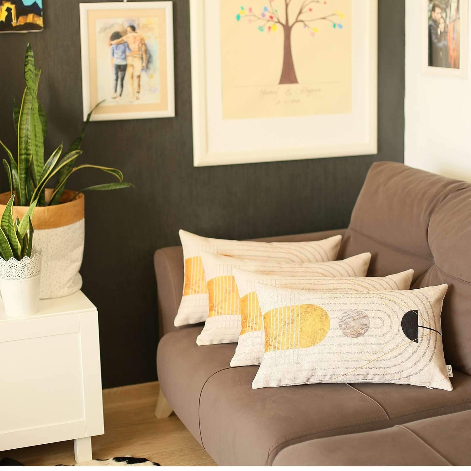 Bring a bit of fashion and zip to your space with this eye-catching and comfy set of four 20" x 12" black and yellow abstract zippered handmade polyester lumbar pillow. These great looking soft decorative pillows are expertly made of durable and long lasting polyester in a black and yellow coloration. Decorative throw pillows not only add color and dimension to your space but can be comfy and supportive when you are lounging and cuddling as well. Decorative pillows are a great way to change up the look and feel of your space easily and quickly. 6.4" H x 20" W x 12" D