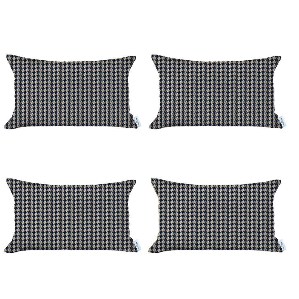 Set Of Four 20" X 12" Black Polyester Houndstooth Zippered Pillow