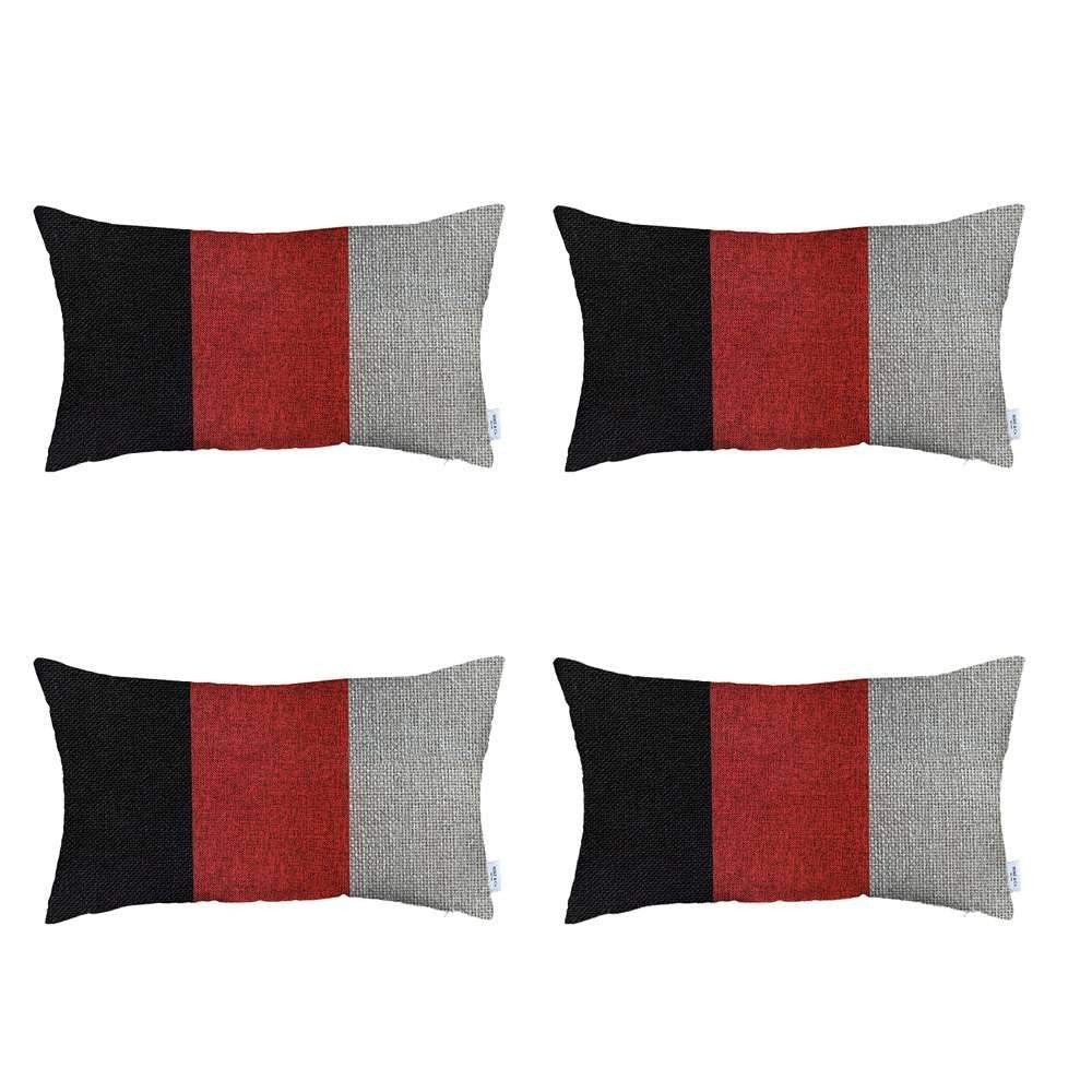 Set Of Four 20" X 12" Black Red And Grey Polyester Geometric Zippered Pillow